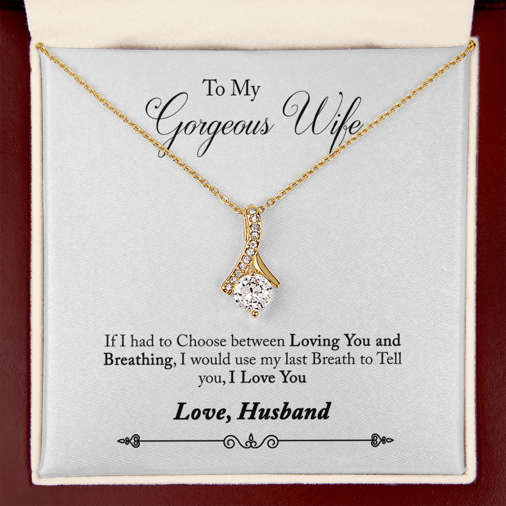 005 To My Gorgeous Wife - 18K Yellow Gold Finish Alluring Beauty Necklace With Mahogany Style Luxury Box