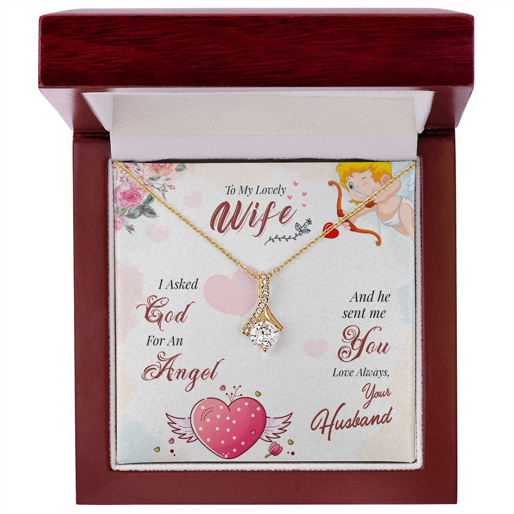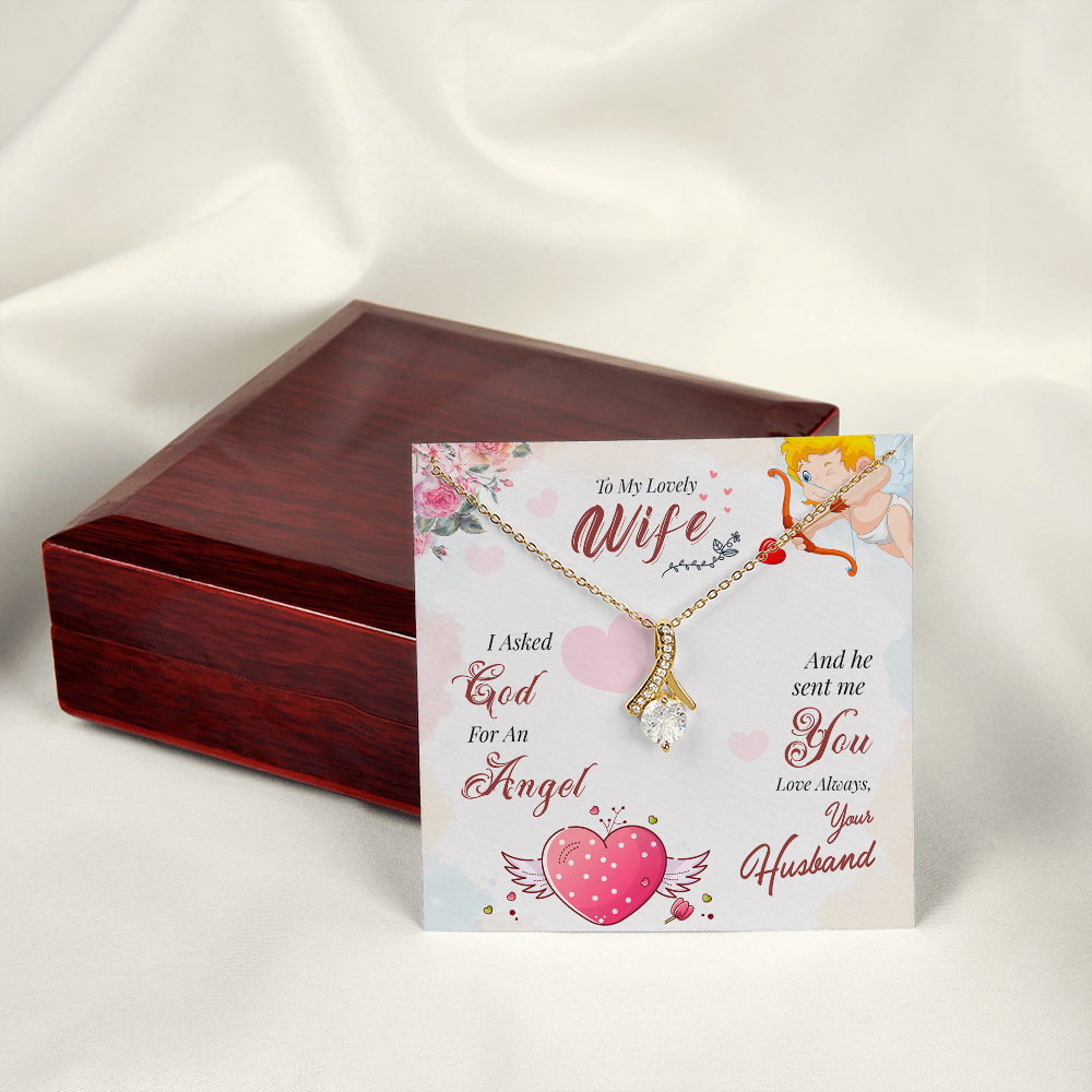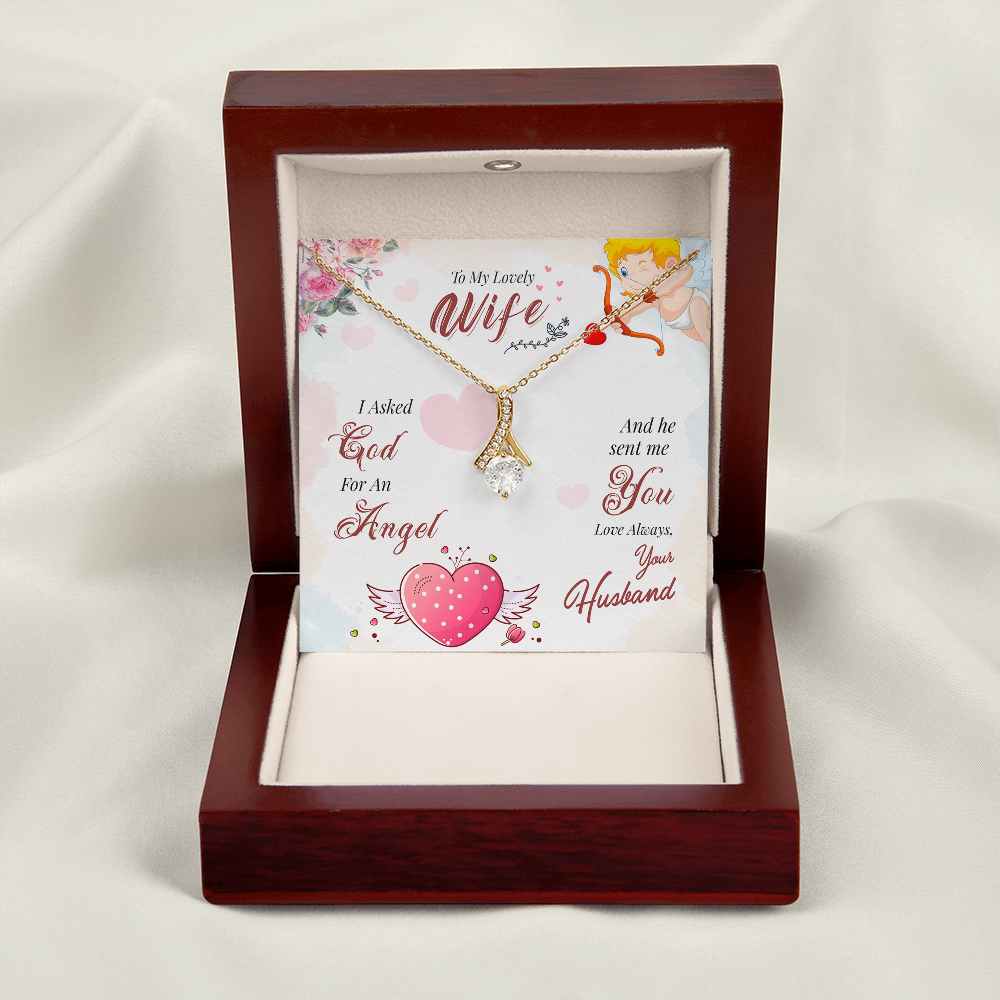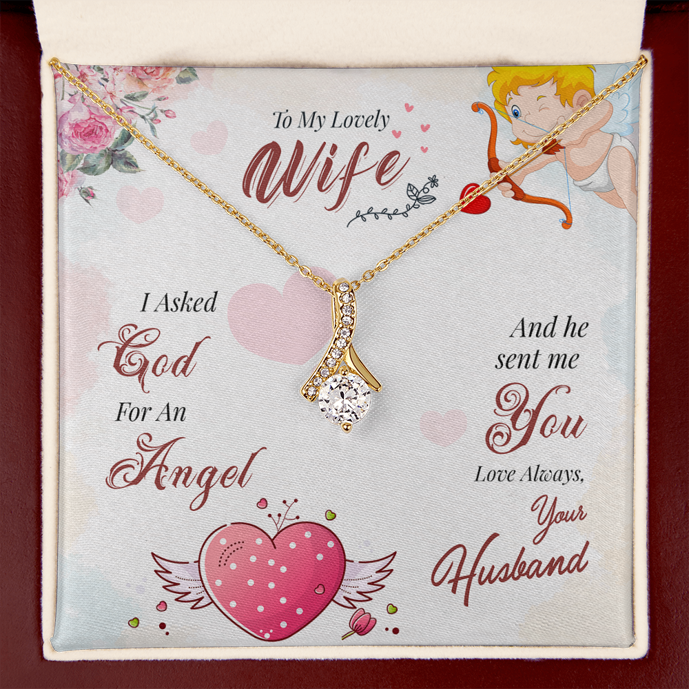 012 To My Lovely Wife - 18K Yellow Gold Finish Alluring Beauty Necklace With Mahogany Style Luxury Box