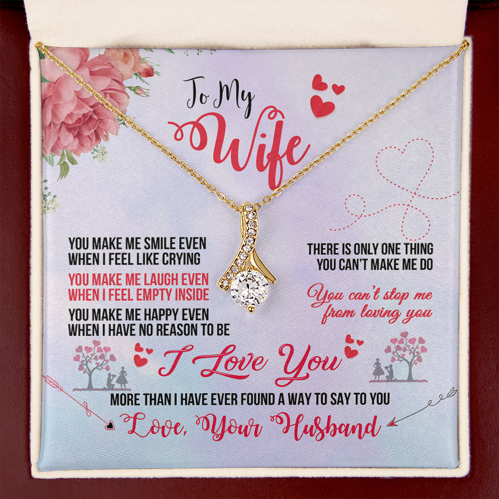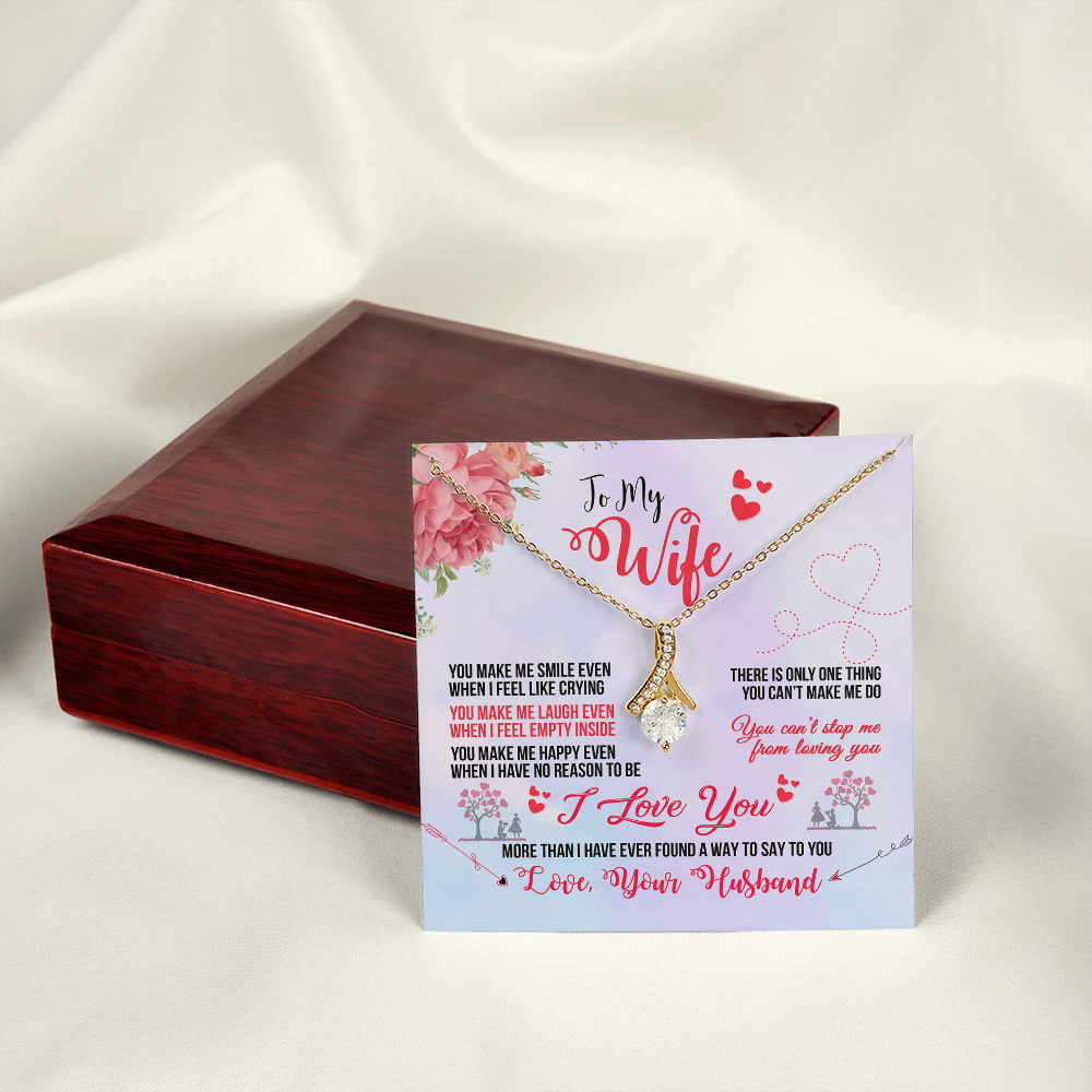 013 To My Wife - 18K Yellow Gold Finish Alluring Beauty Necklace With Mahogany Style Luxury Box