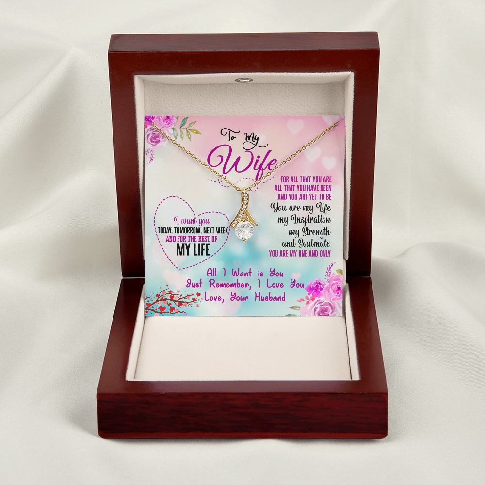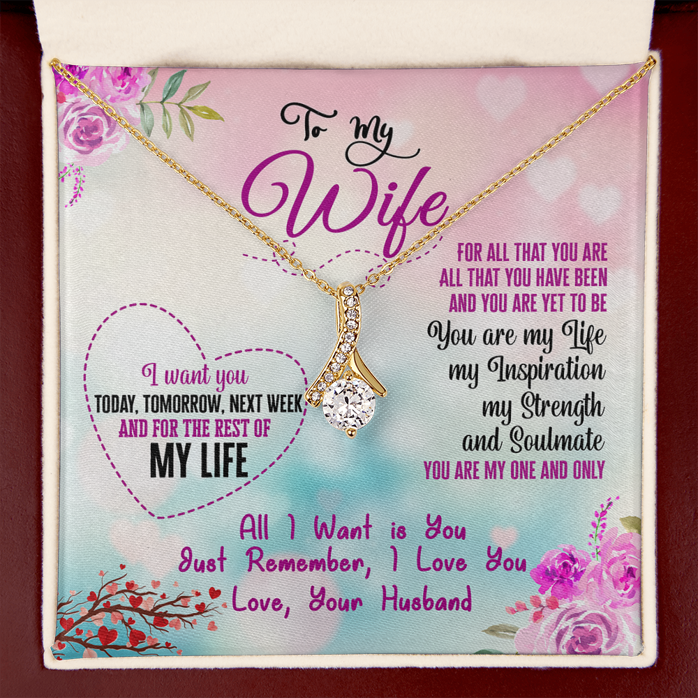 015 To My Wife - 18K Yellow Gold Finish Alluring Beauty Necklace With Mahogany Style Luxury Box