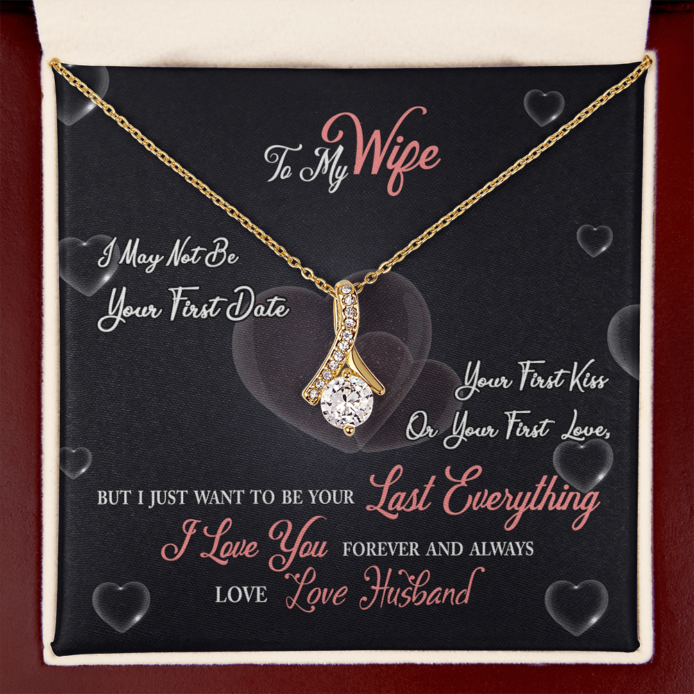 017 To My Wife - 18K Yellow Gold Finish Alluring Beauty Necklace With Mahogany Style Luxury Box