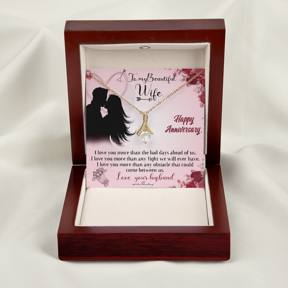 020 To My Beautiful Wife, Happy Anniversary - 18K Yellow Gold Finish Alluring Beauty Necklace With Mahogany Style Luxury Box