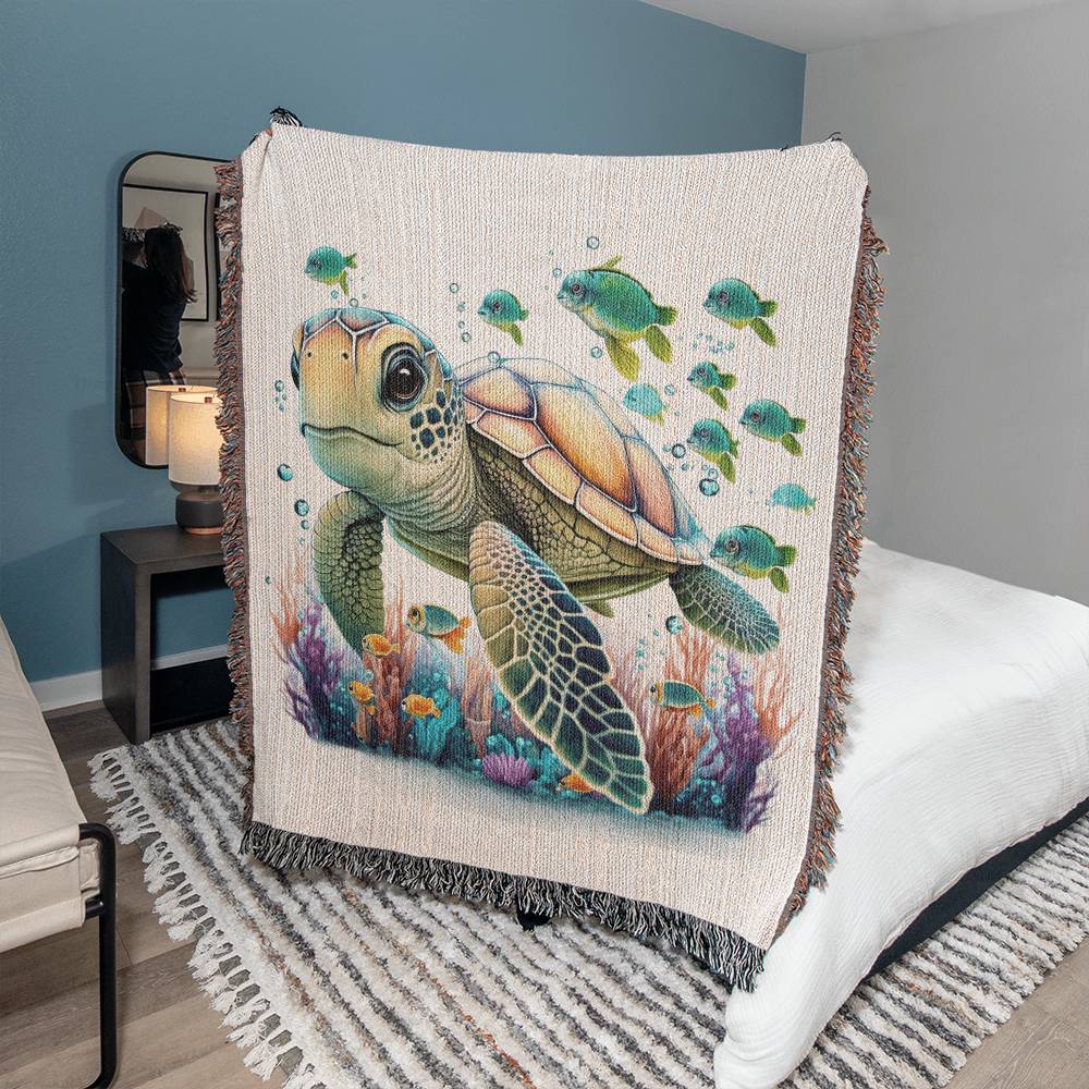 Cute Sea Turtle 003 - 50" x 60" Heirloom Woven Blanket