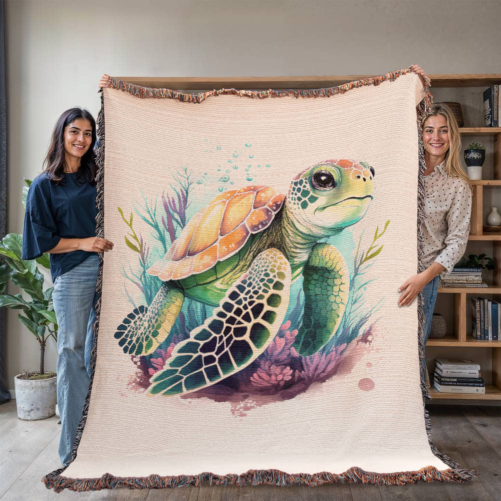 Cute Sea Turtle 007 - 60" x 80" Heirloom Woven Blanket
