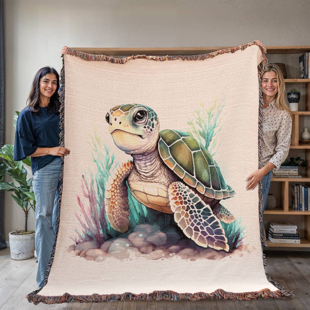 Cute Sea Turtle 015 - 60" x 80" Heirloom Woven Blanket