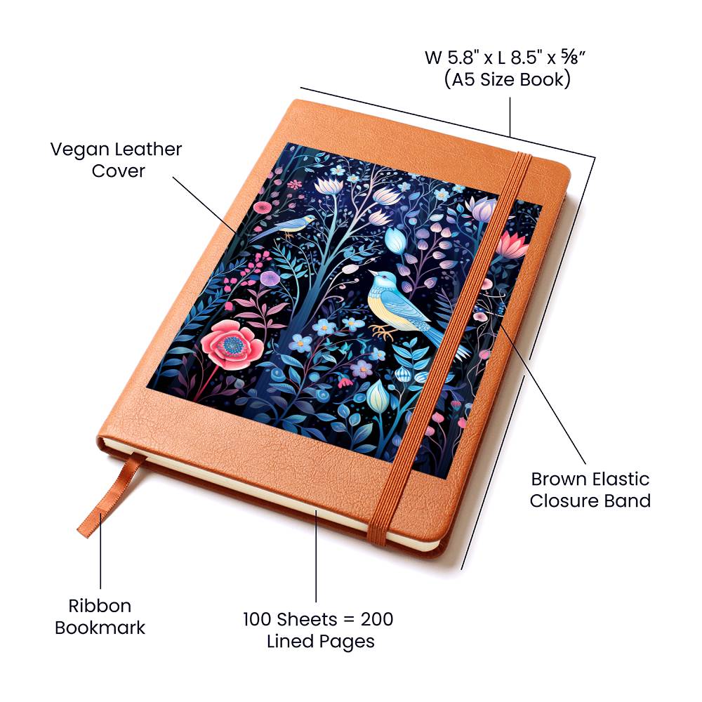 Birds And Floral Design 051 - Vegan Leather Journal