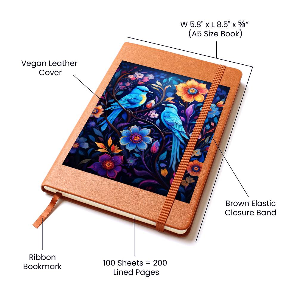 Birds And Floral Design 062 - Vegan Leather Journal