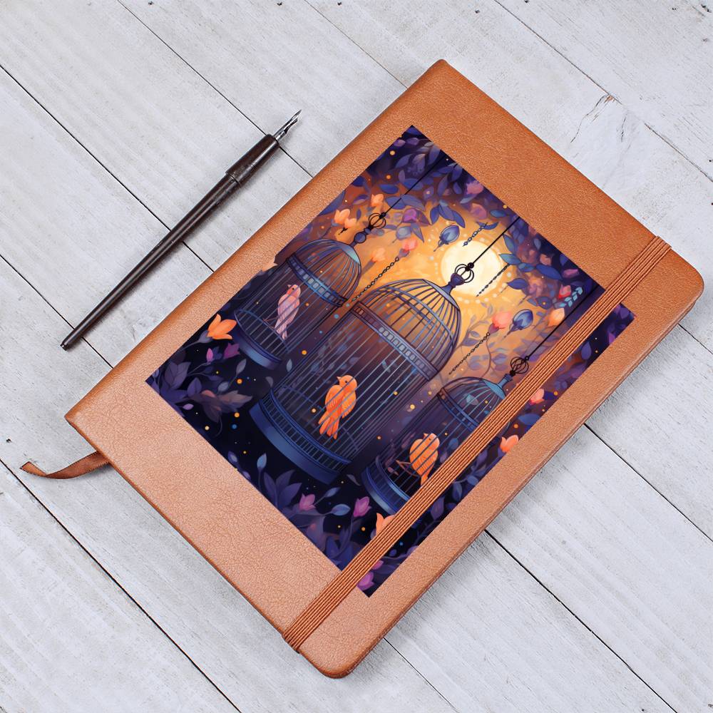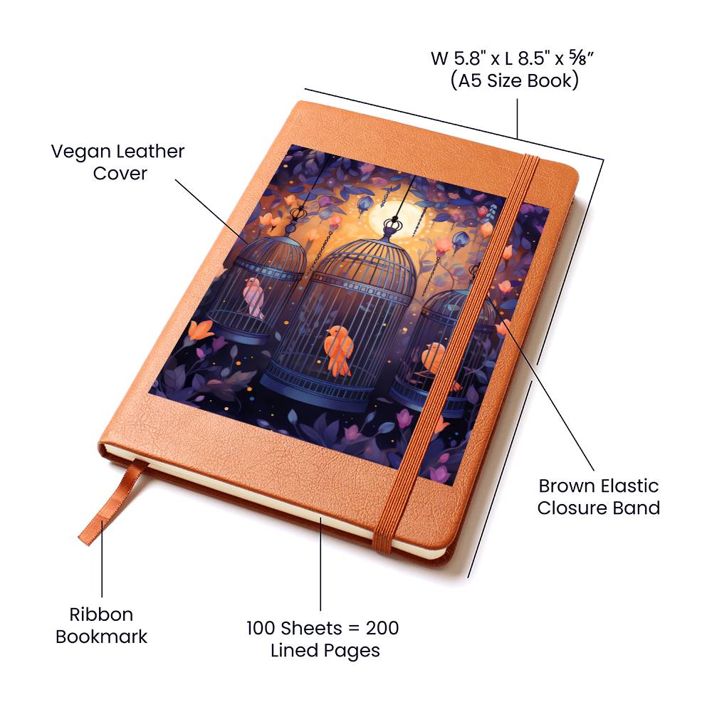 Birds And Floral Design 074 - Vegan Leather Journal