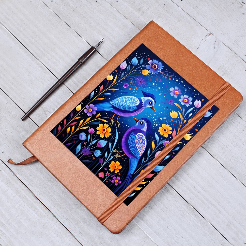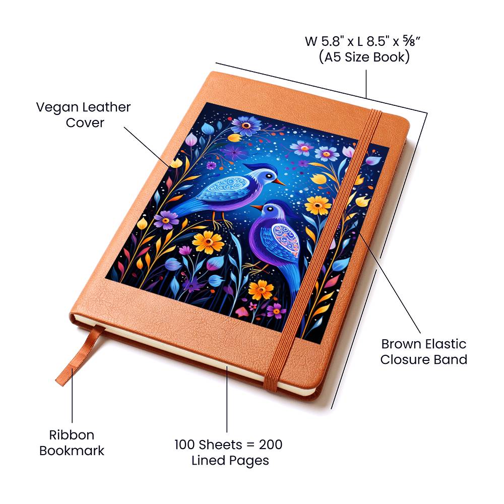 Birds And Floral Design 079 - Vegan Leather Journal