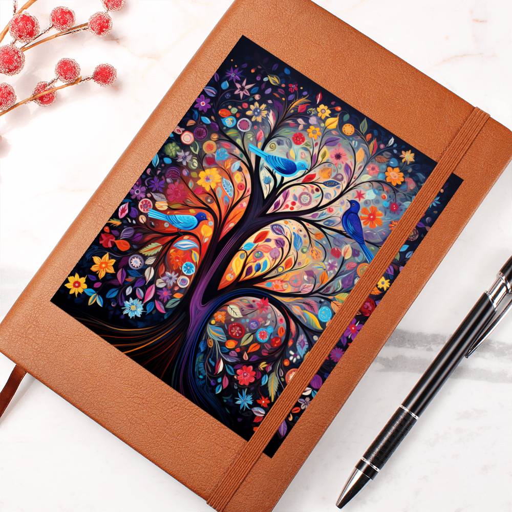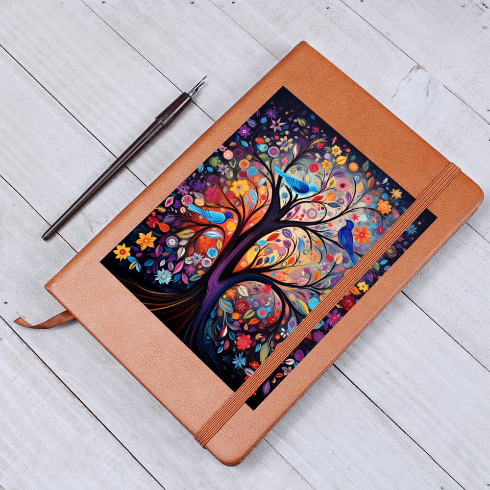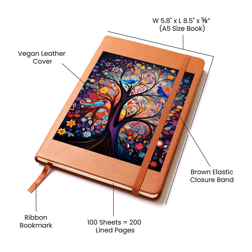 Birds And Floral Design 080 - Vegan Leather Journal