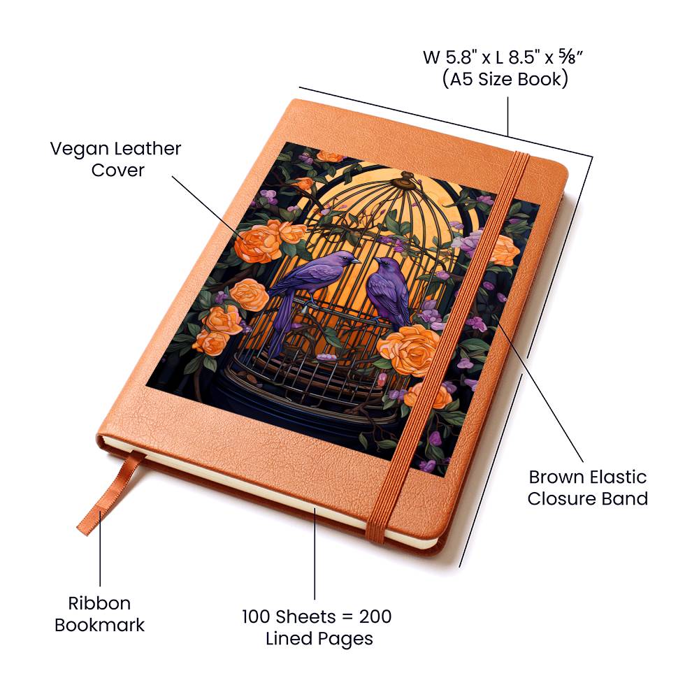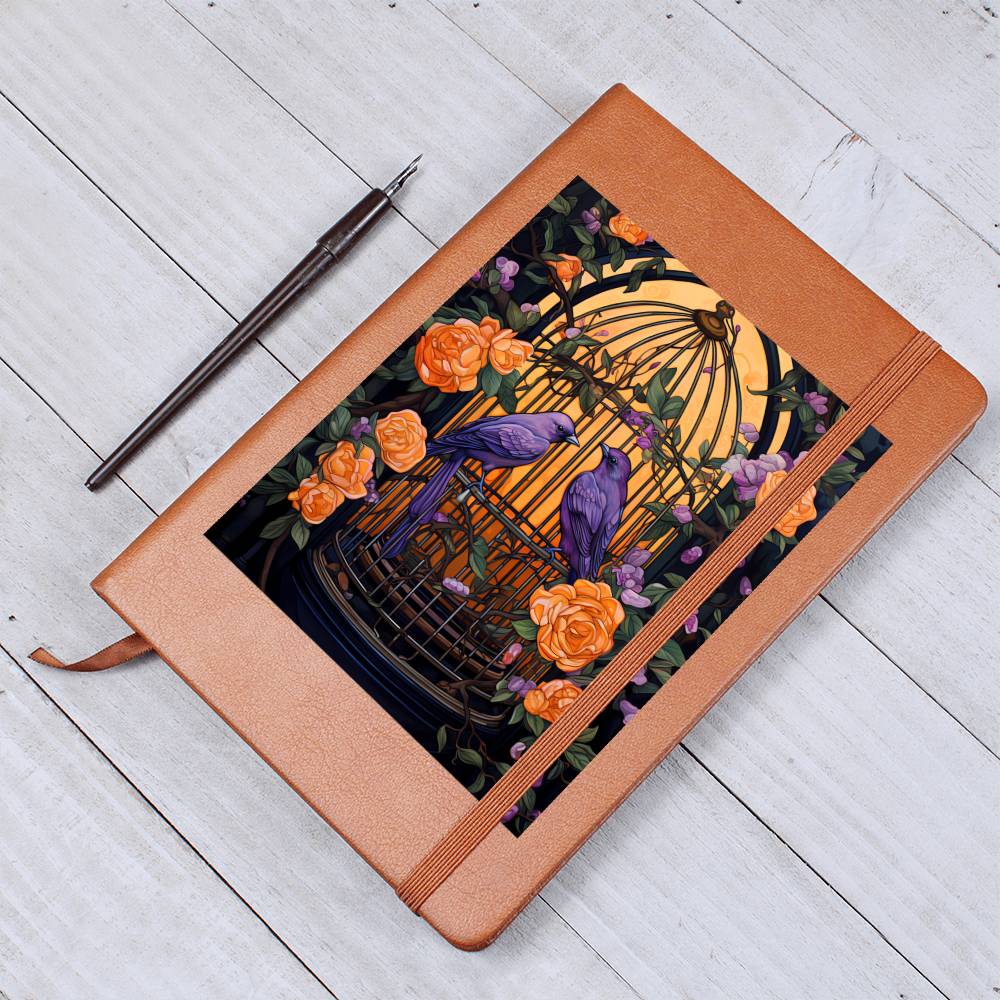 Birds And Floral Design 083 - Vegan Leather Journal