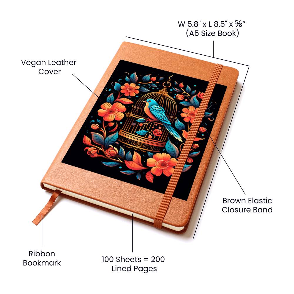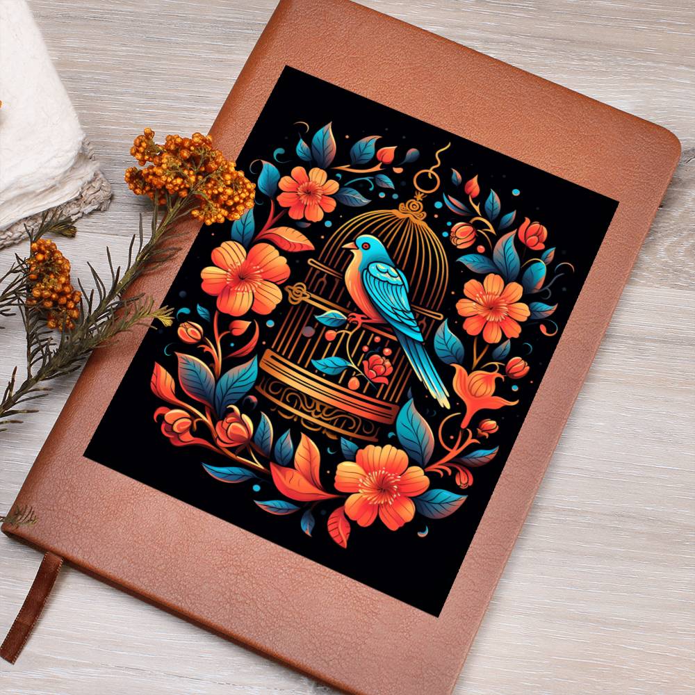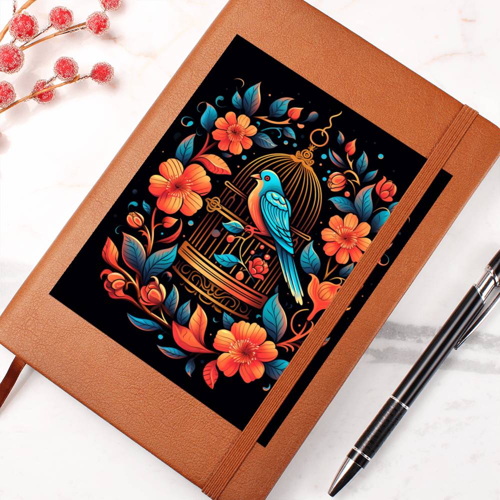 Birds And Floral Design 086 - Vegan Leather Journal