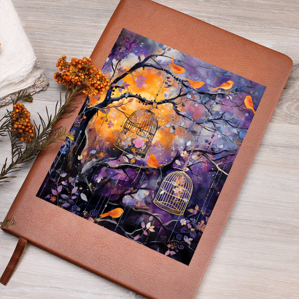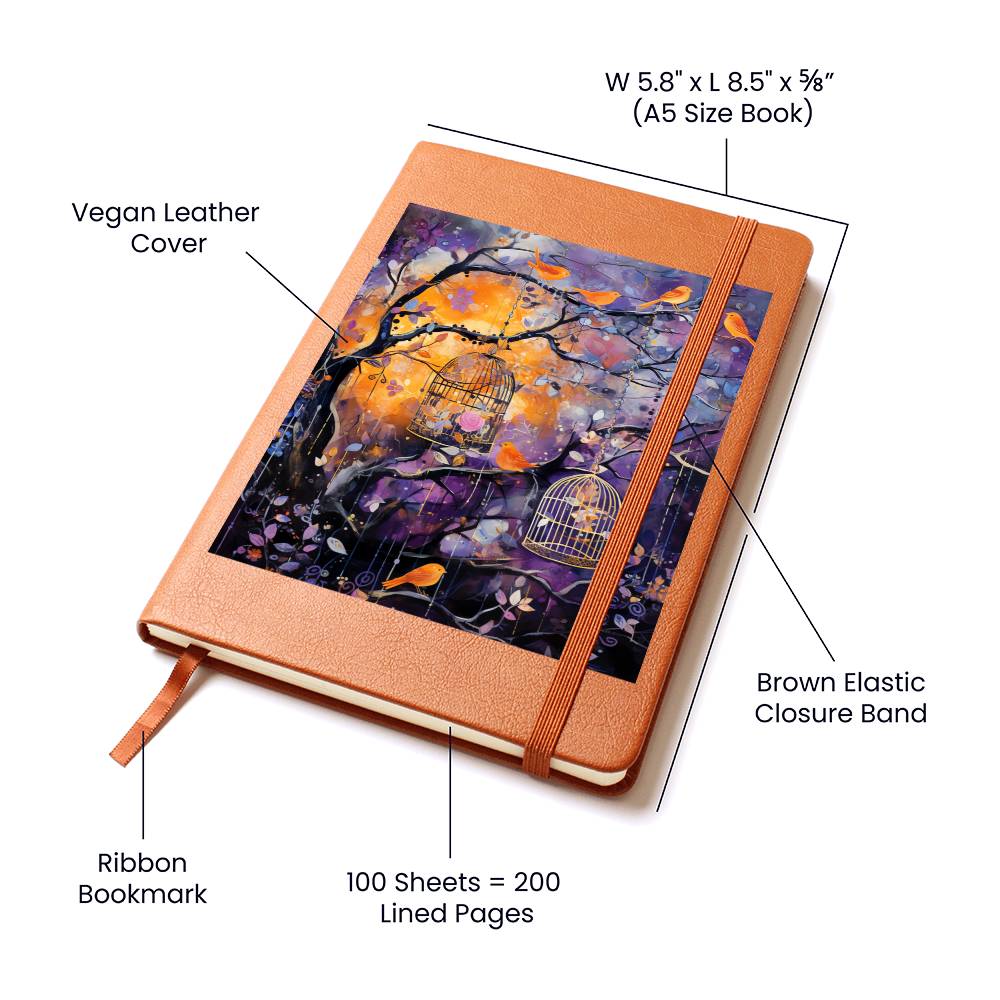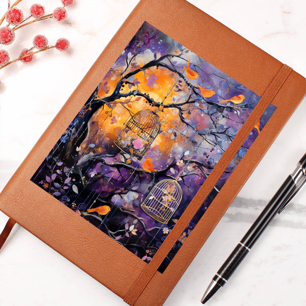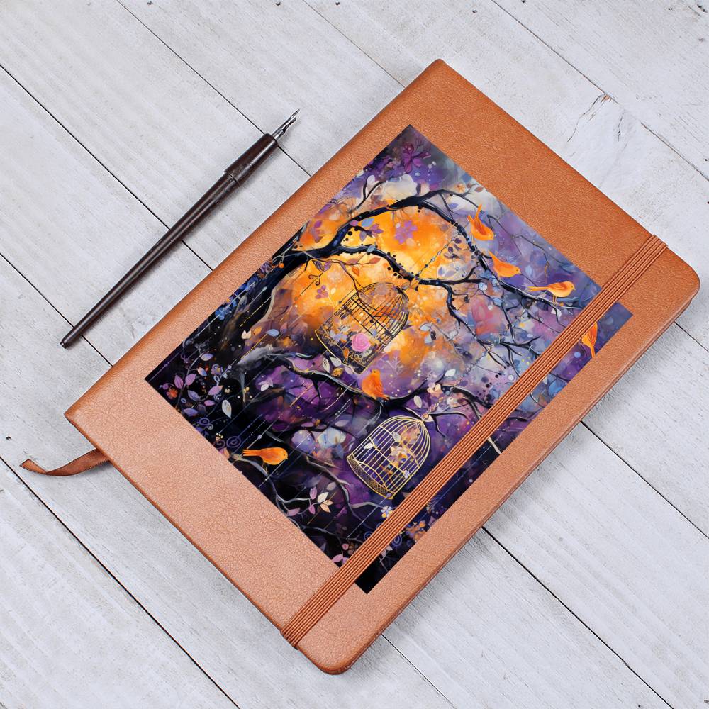 Birds And Floral Design 087 - Vegan Leather Journal