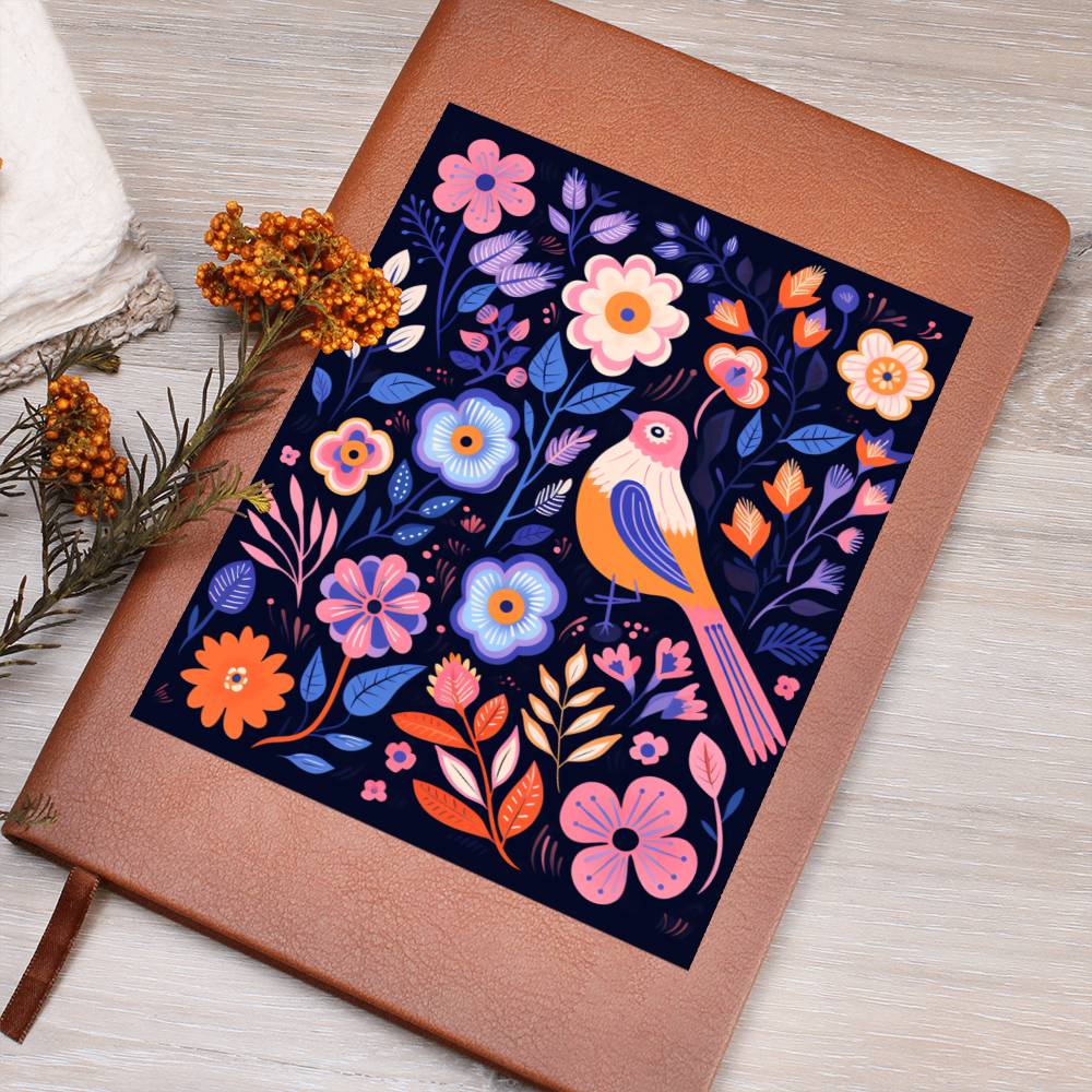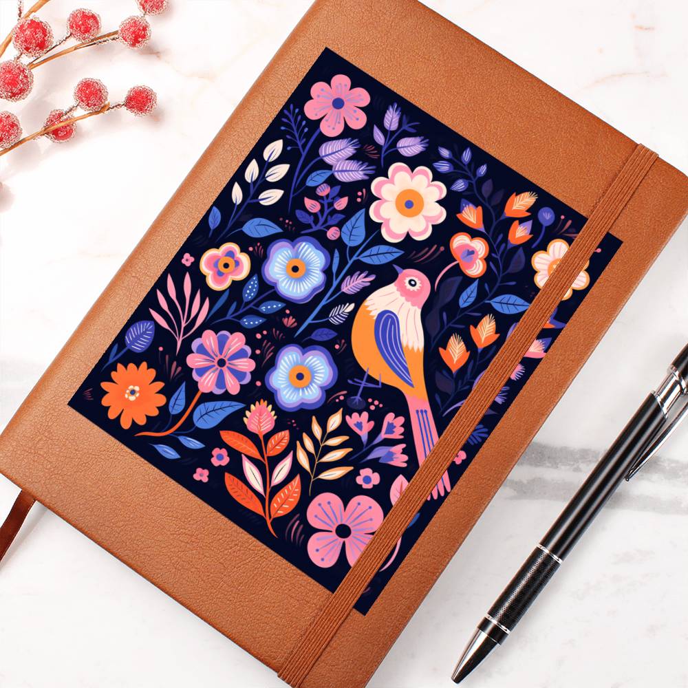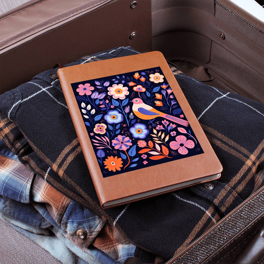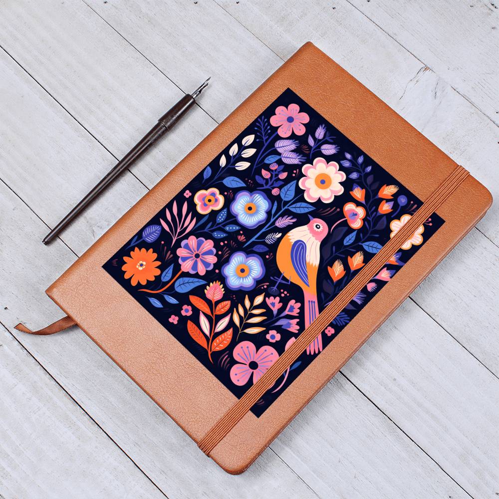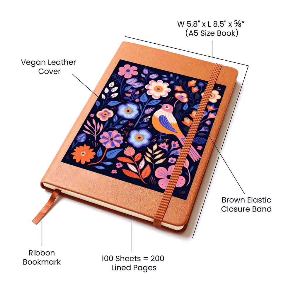 Birds And Floral Design 093 - Vegan Leather Journal