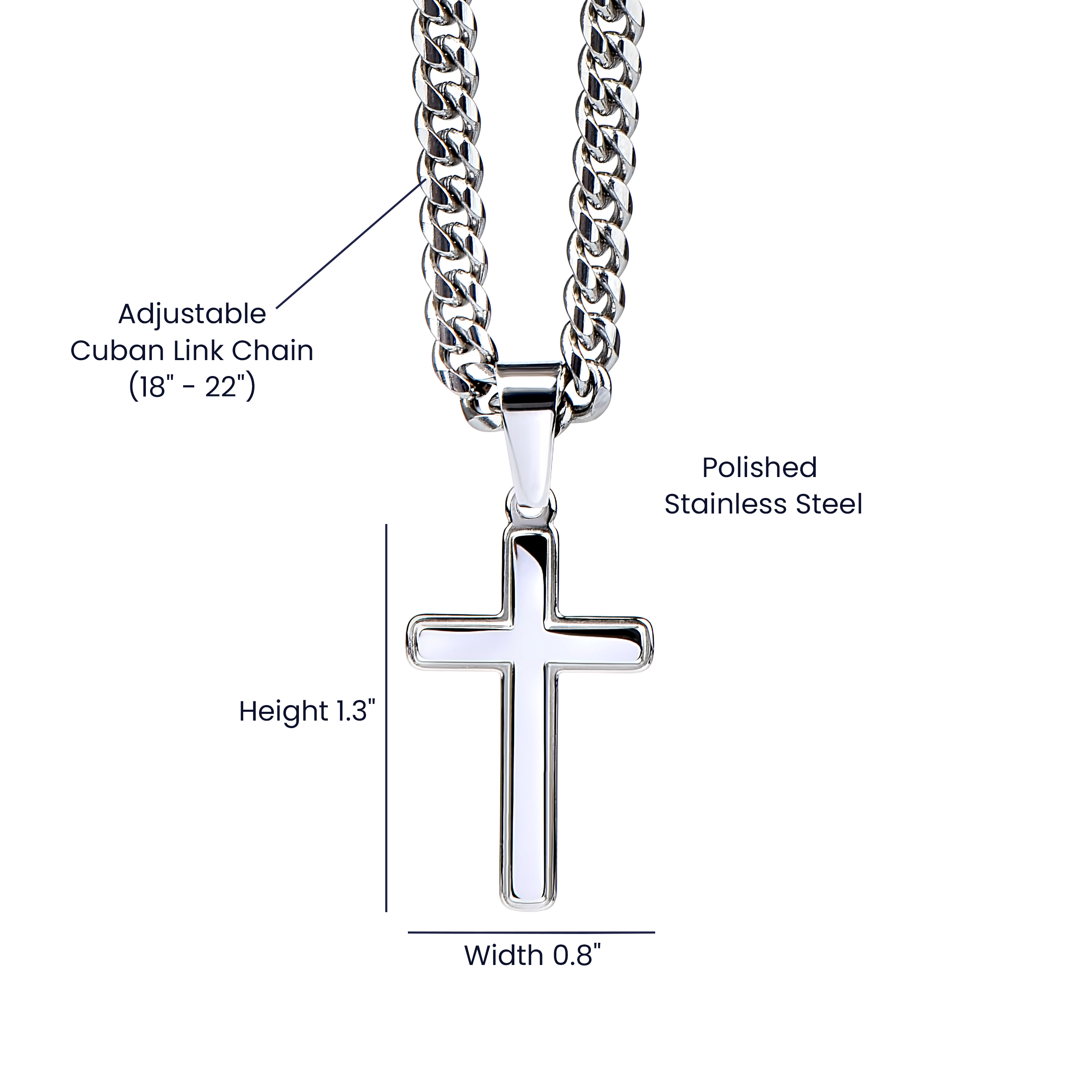 Wear your faith proudly with this Stainless Steel Cross Necklace with Cuban Link Chain. Perfect for special occasions or everyday wear, this makes a wonderful gift idea for you or your loved one. It will surely be treasured for years to come!
