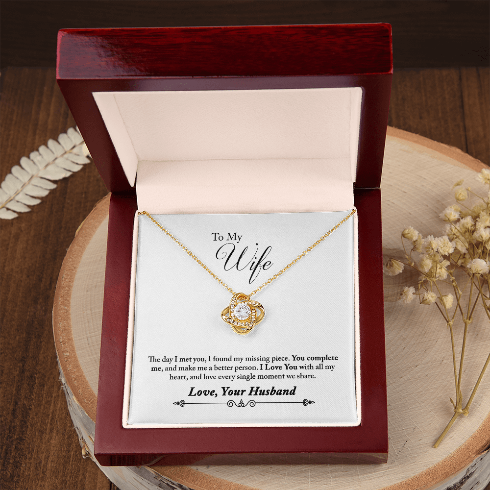 010 To My Wife - 18K Yellow Gold Finish Love Knot Necklace With Mahogany Style Luxury Box