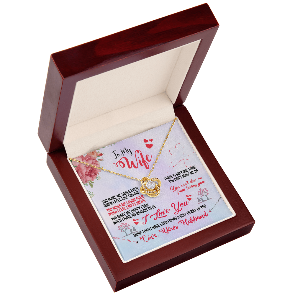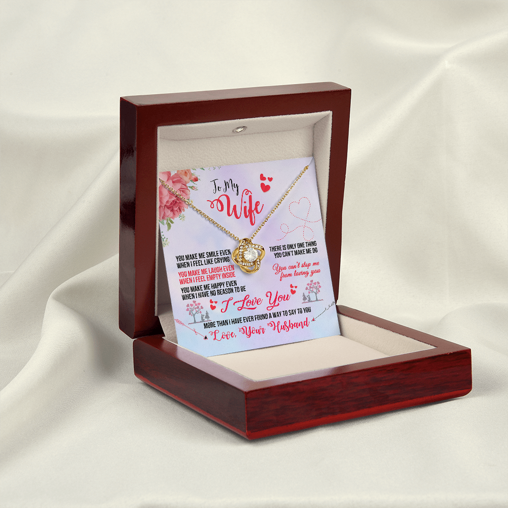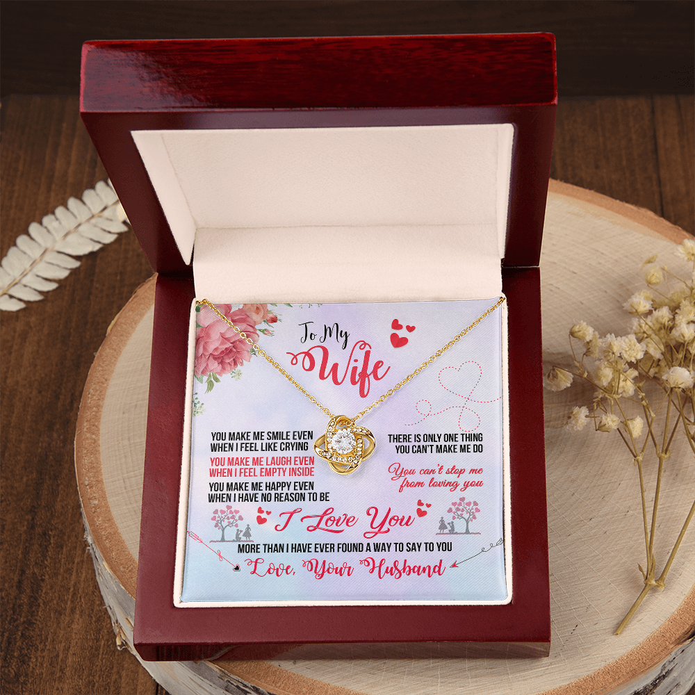 013 To My Wife - 18K Yellow Gold Finish Love Knot Necklace With Mahogany Style Luxury Box