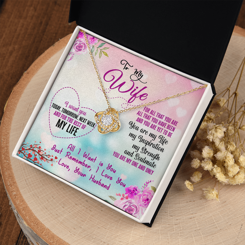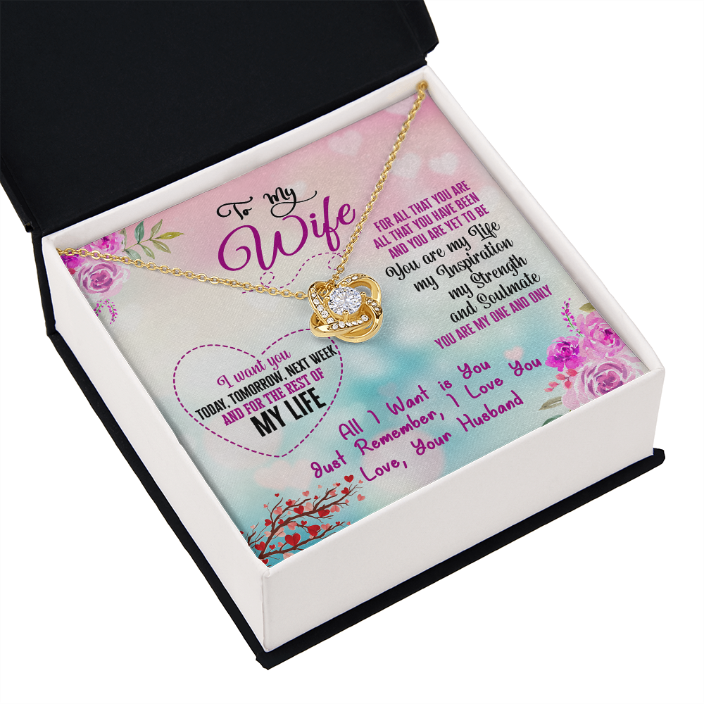 015 To My Wife - 18K Yellow Gold Finish Love Knot Necklace