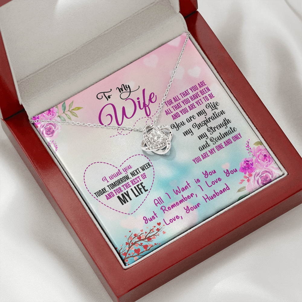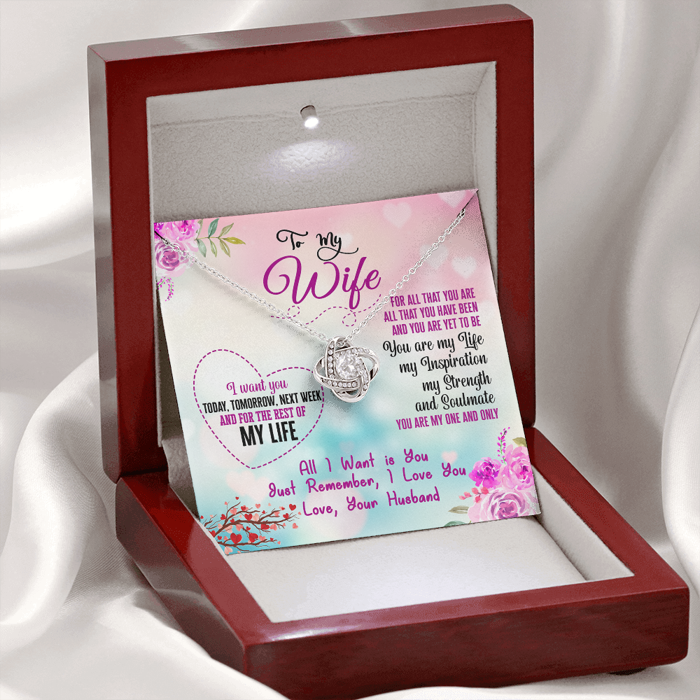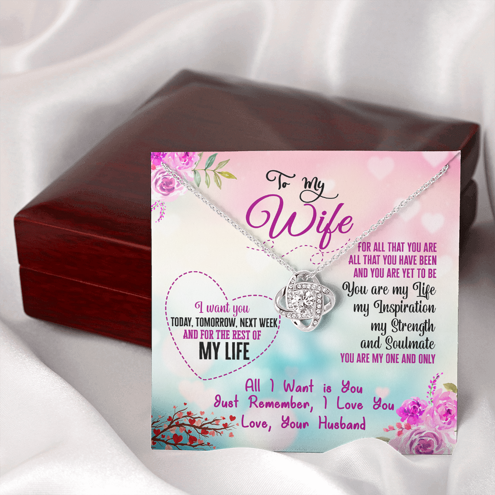 015 To My Wife - Love Knot Necklace With Mahogany Style Luxury Box