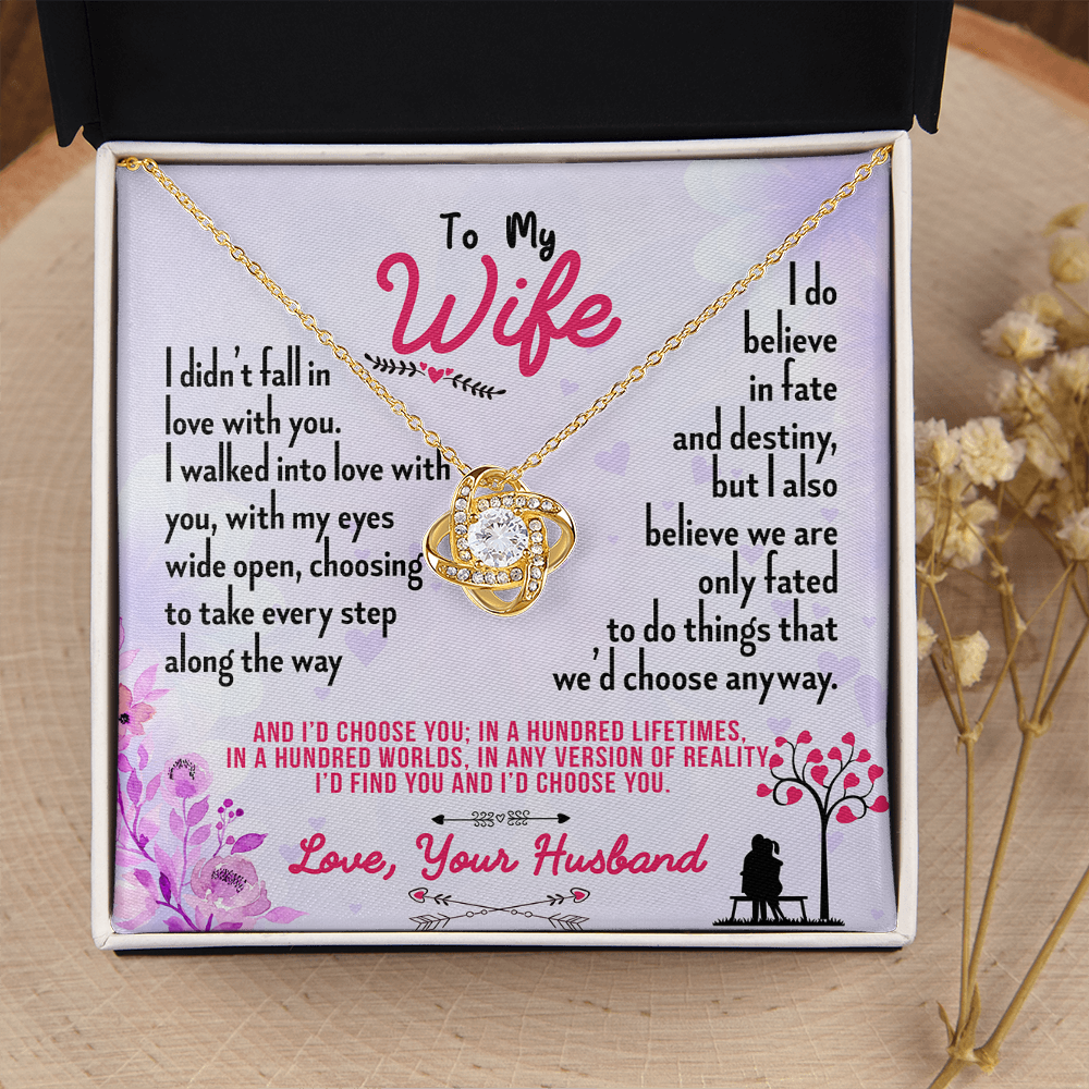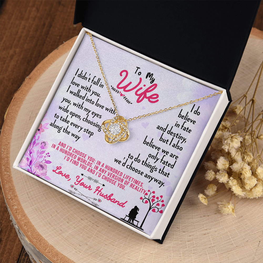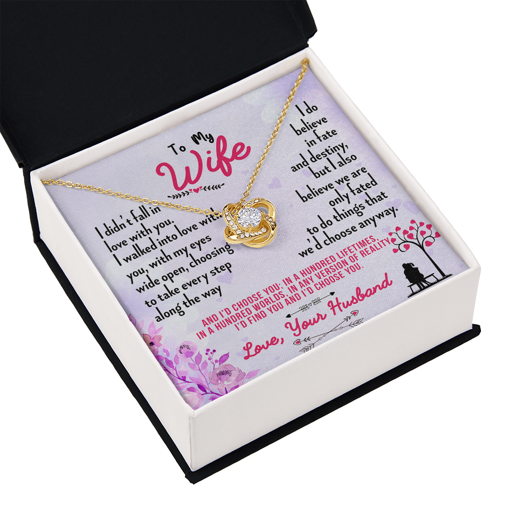 016 To My Wife - 18K Yellow Gold Finish Love Knot Necklace