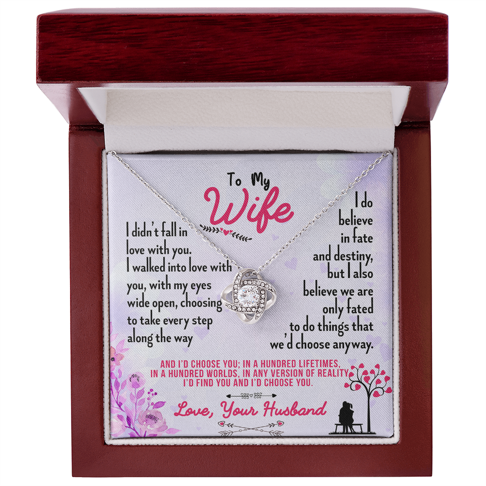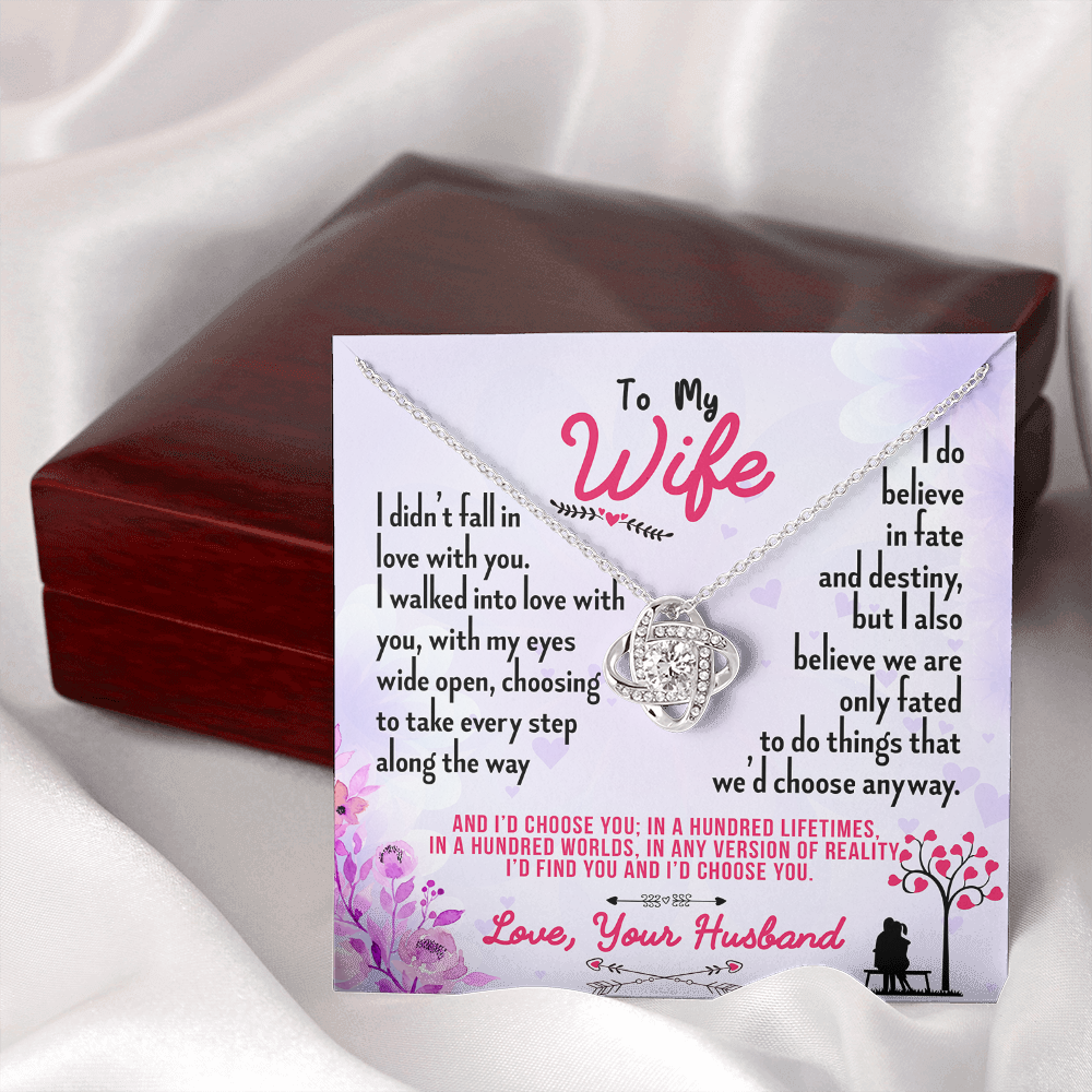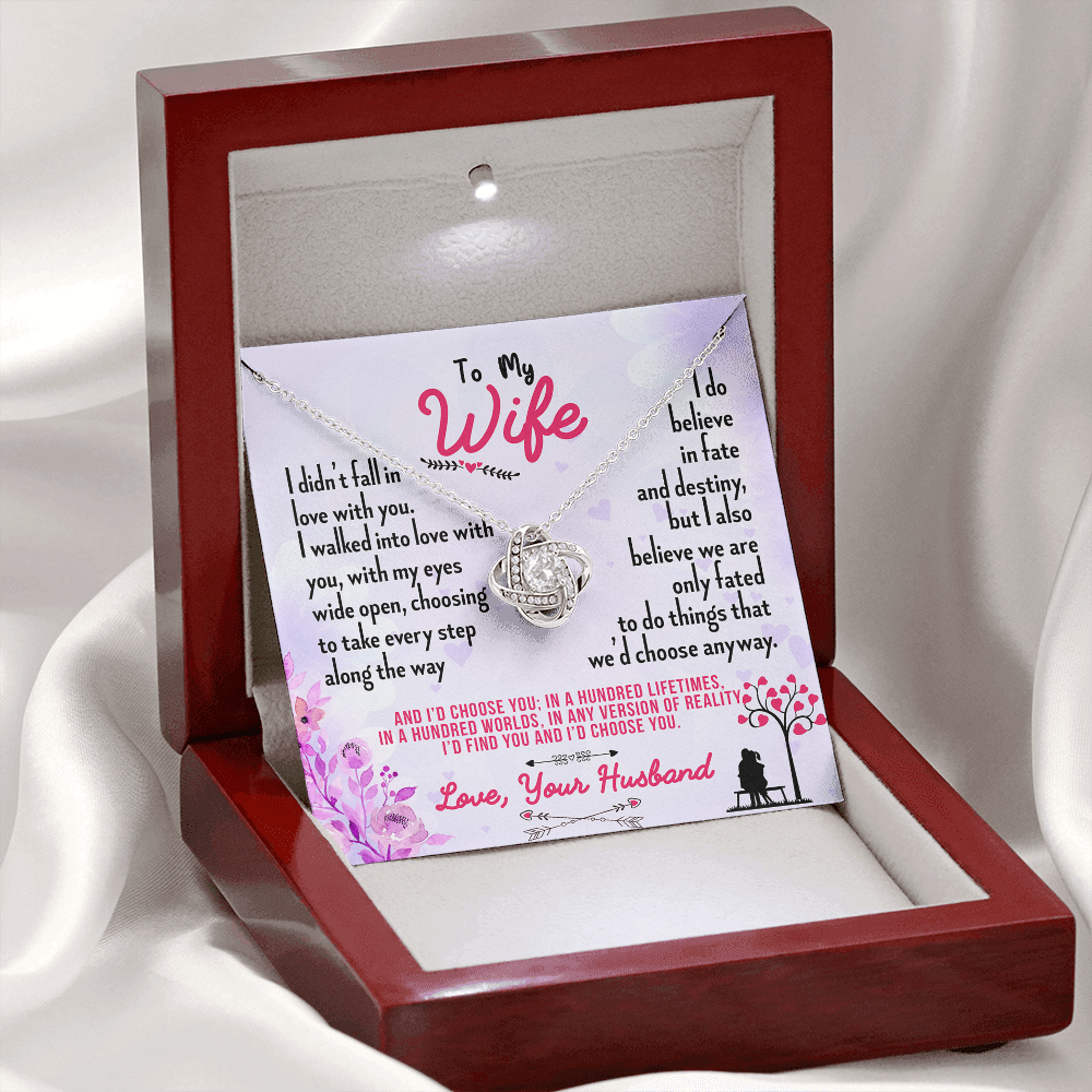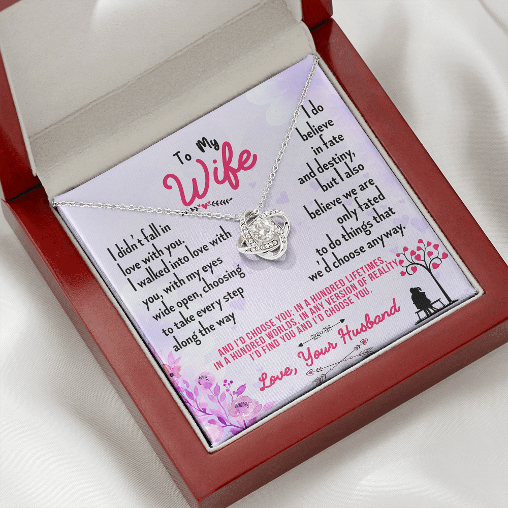 016 To My Wife - Love Knot Necklace With Mahogany Style Luxury Box