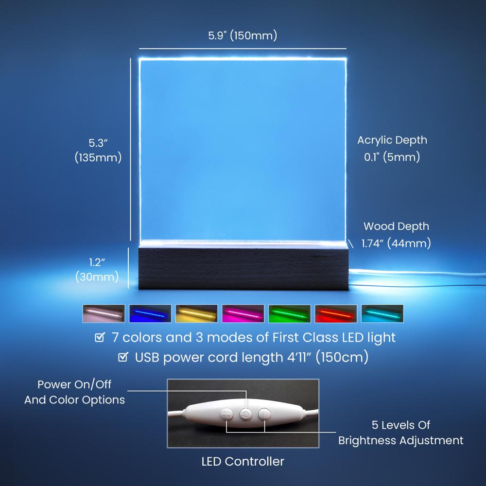 Combine modern technology and a heartfelt message with our Printed Square Acrylic Plaque! This design is printed on crystal-clear premium acrylic and easily becomes the centerpiece of any room. And the contemporary design wouldn't be complete without its sleek wooden base, elevating the display that will instantly become a conversation starter. Create a memorable presentation when you upgrade to the LED wooden base!