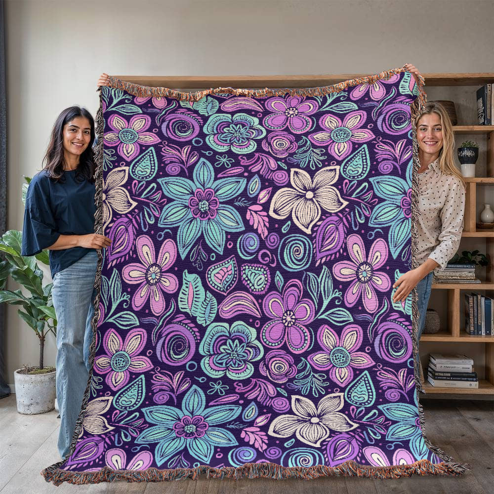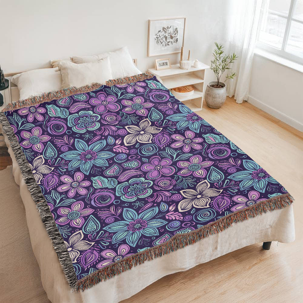 Blue And Purple Floral Pattern 005 - 60" x 80" Heirloom Woven Blanket