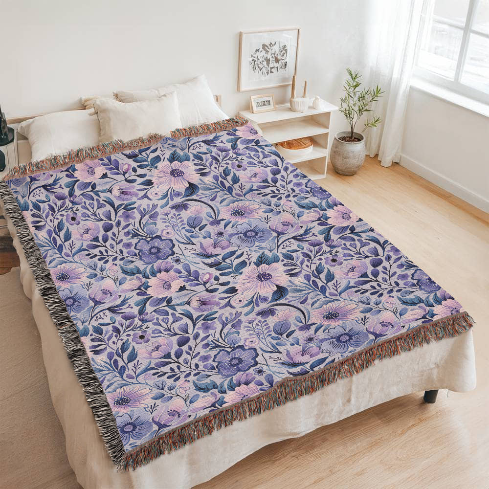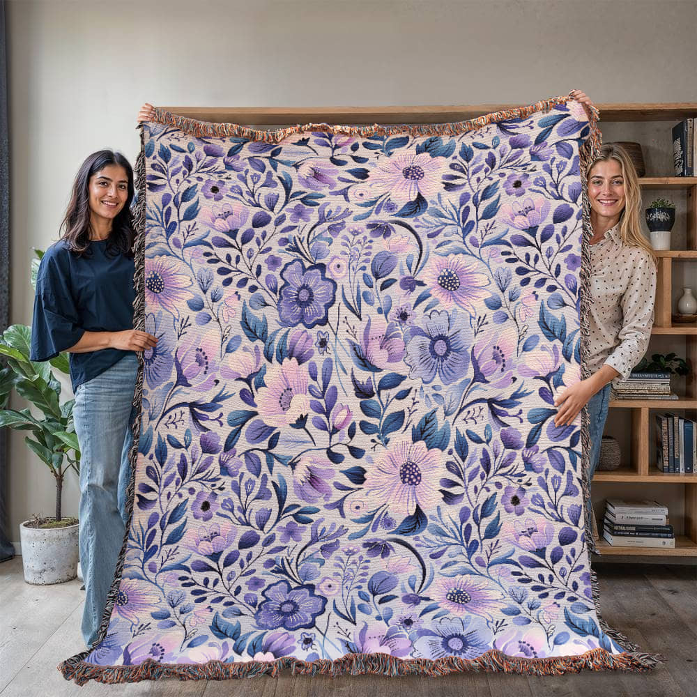Blue And Purple Floral Pattern 017 - 60" x 80" Heirloom Woven Blanket