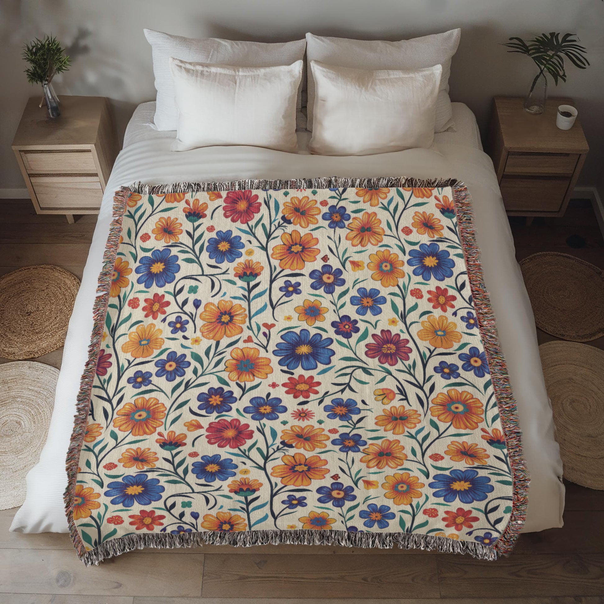 Mexican Floral Fiesta Pattern 001 - 50" x 60" Heirloom Woven Blanket