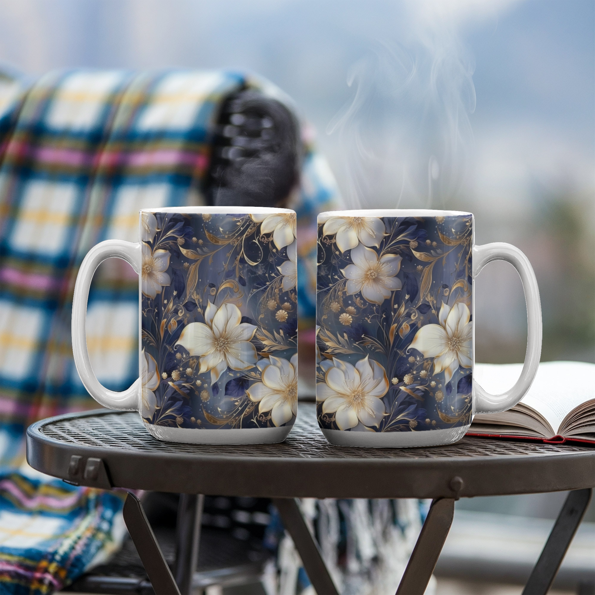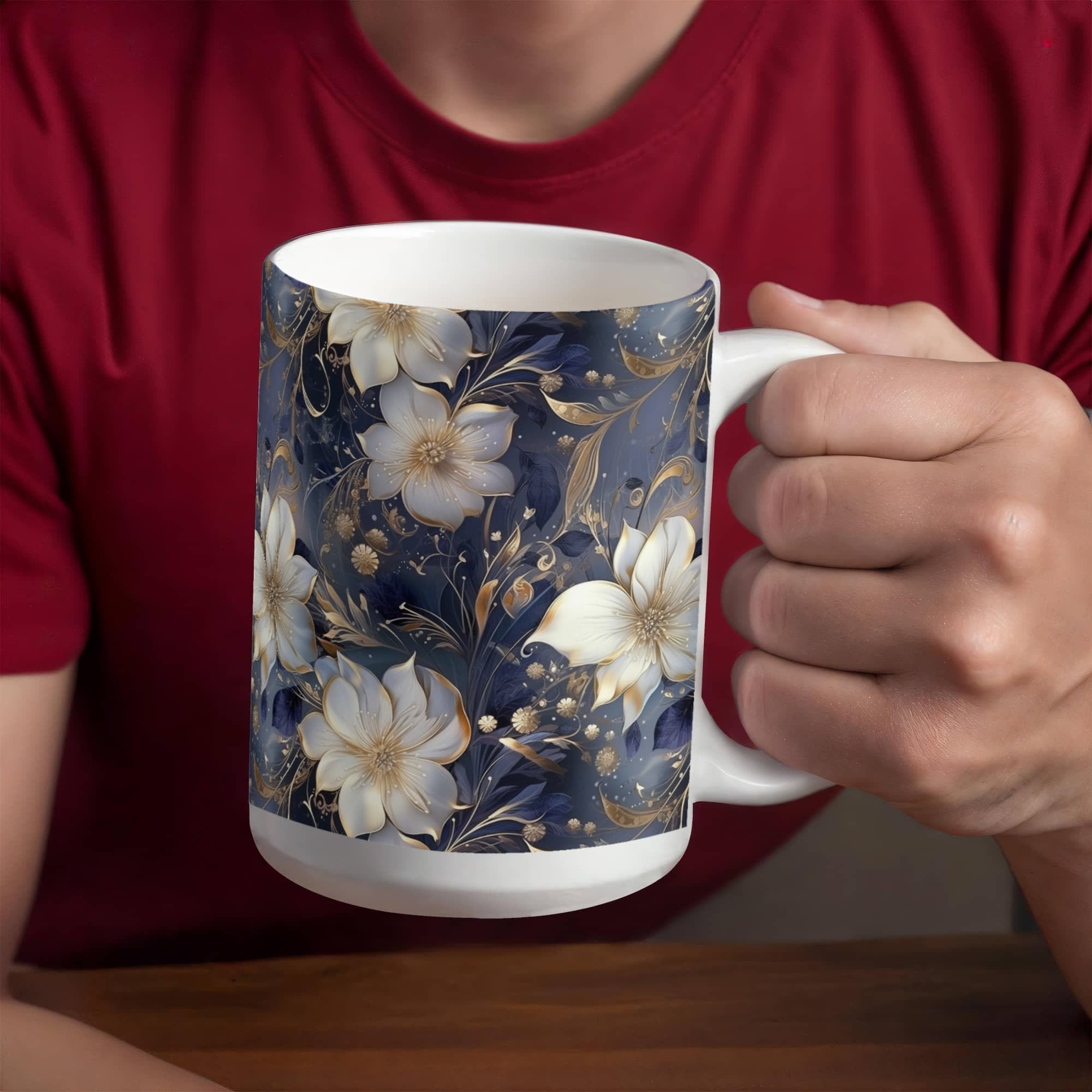 Nocturnal Bloom Pattern 010 - 15oz White Ceramic Mug