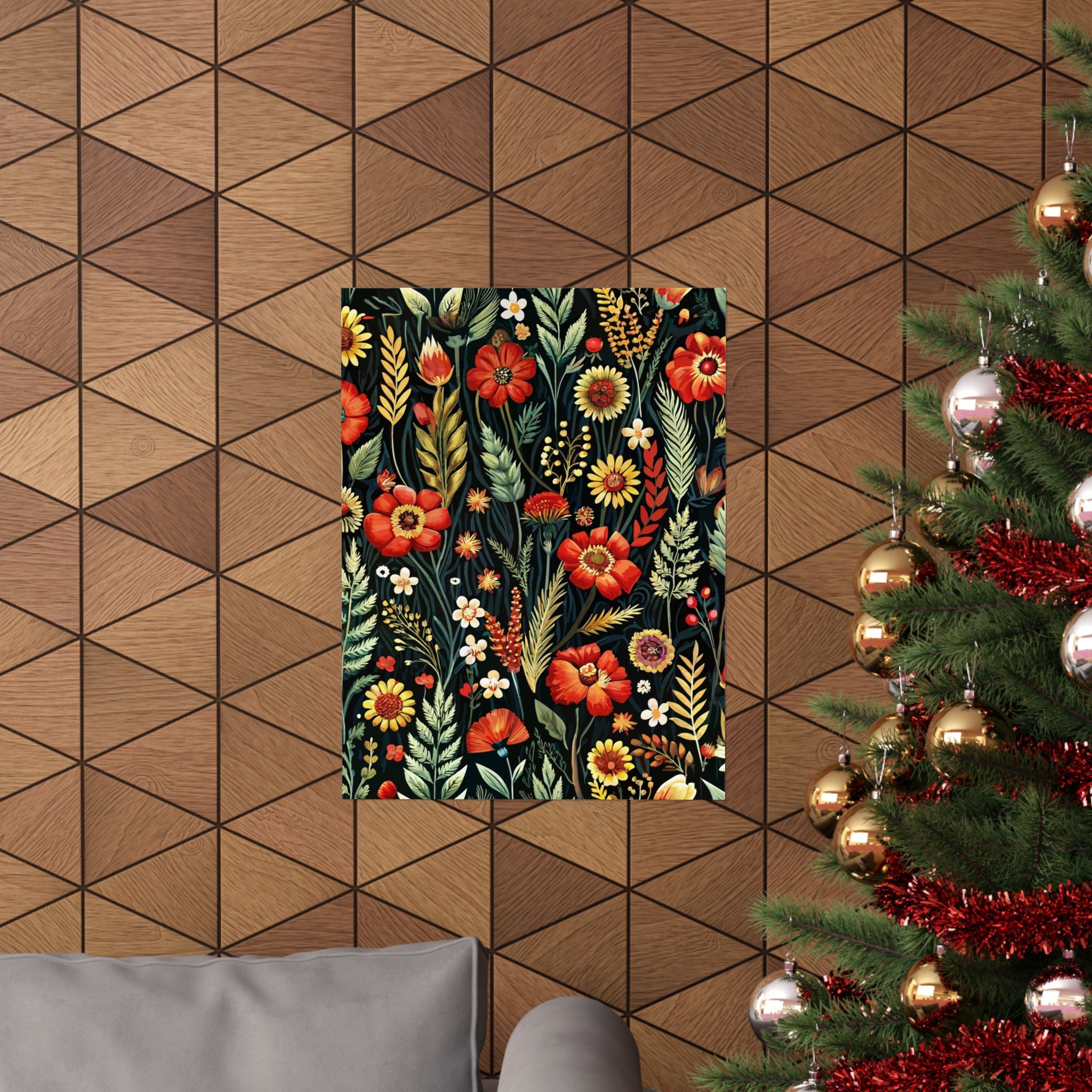 Folk Floral Pattern, Balkan Inspired 02 - 18 in x 24 in Matte Poster
