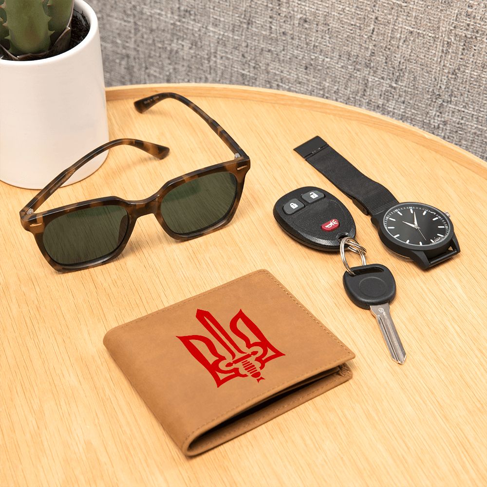 Stylized Tryzub (Red) - Leather Wallet