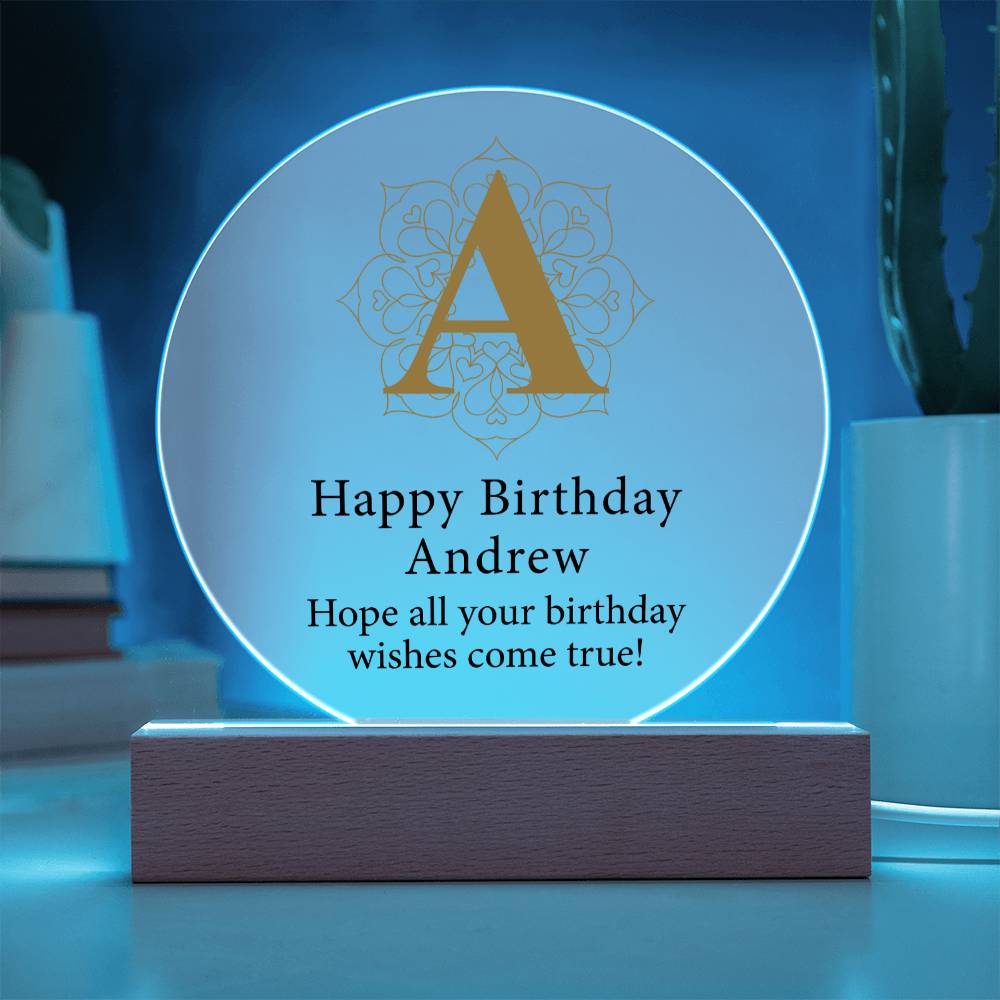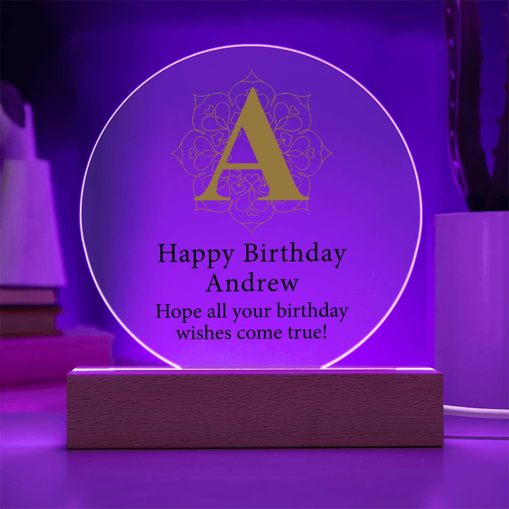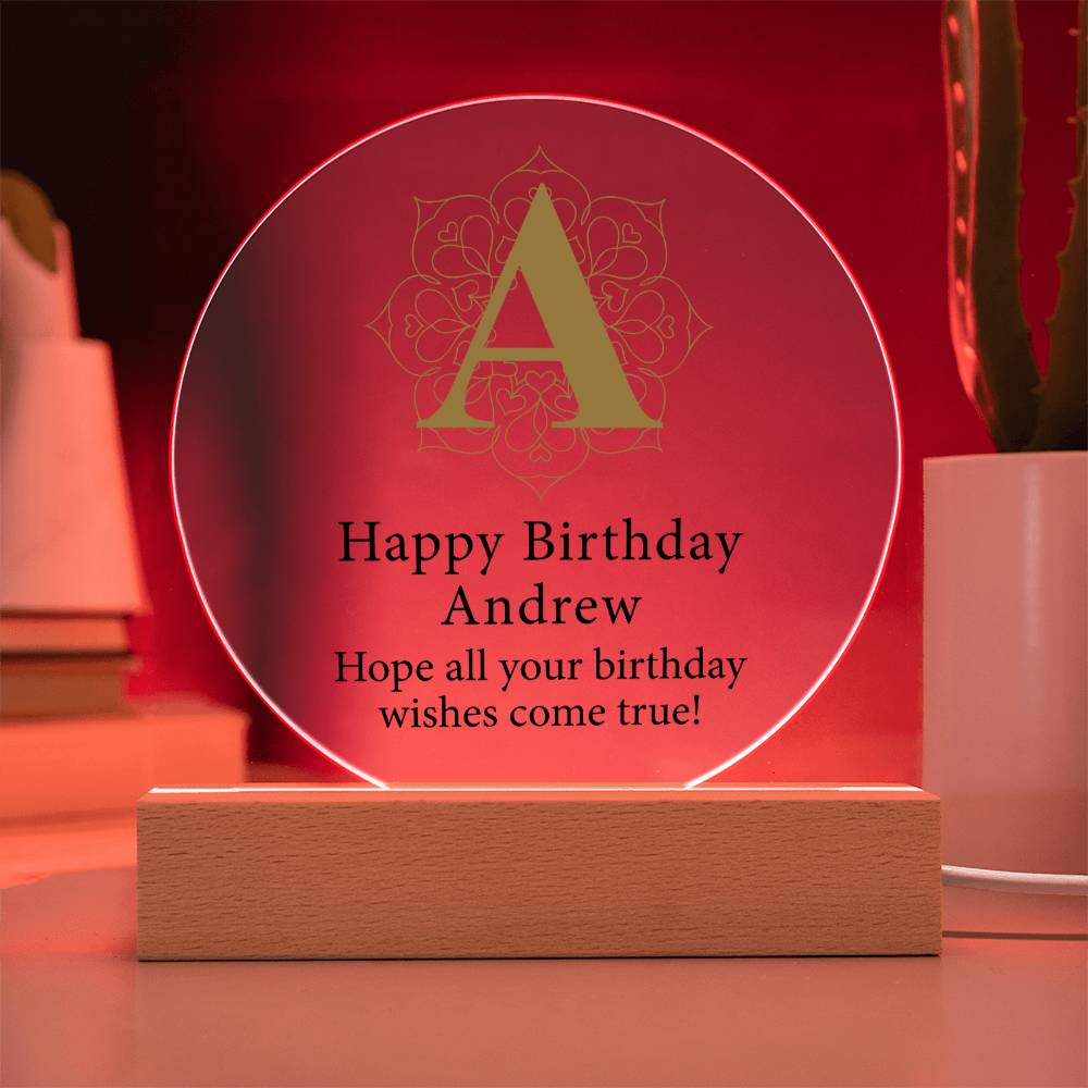 Create a memorable welcome to any room with our Circle Acrylic Plaque. This beautiful sign is handcrafted using premium acrylic and a vibrantly printed design. Display your beautiful plaque in your own home or give it as a gift to make a statement. This would make an ideal gift for your beloved partner, family members, or dear friends on special occasions like anniversaries, birthdays, or any event where you want to express your love and appreciation in an unforgettable way. Your sign features a sleek wooden base, but you can elevate your presentation by upgrading to the wooden LED base!