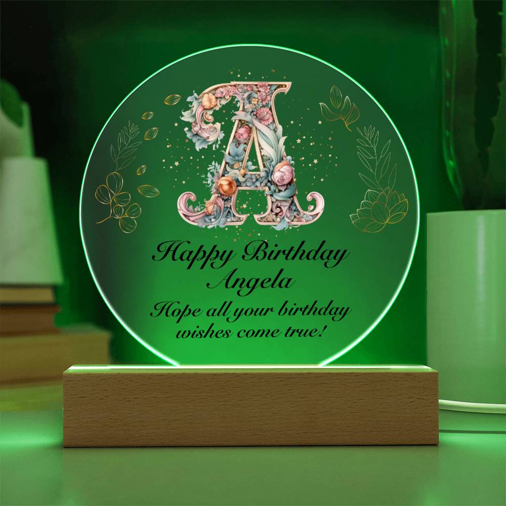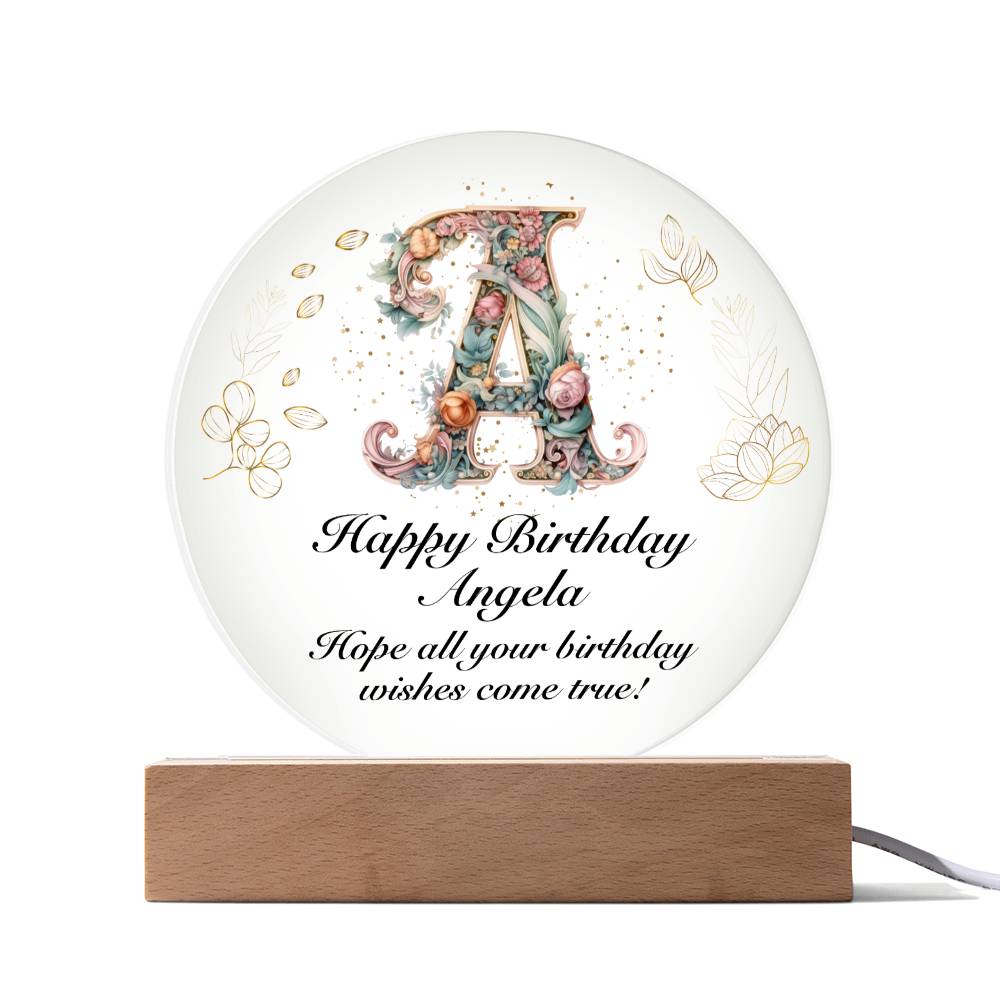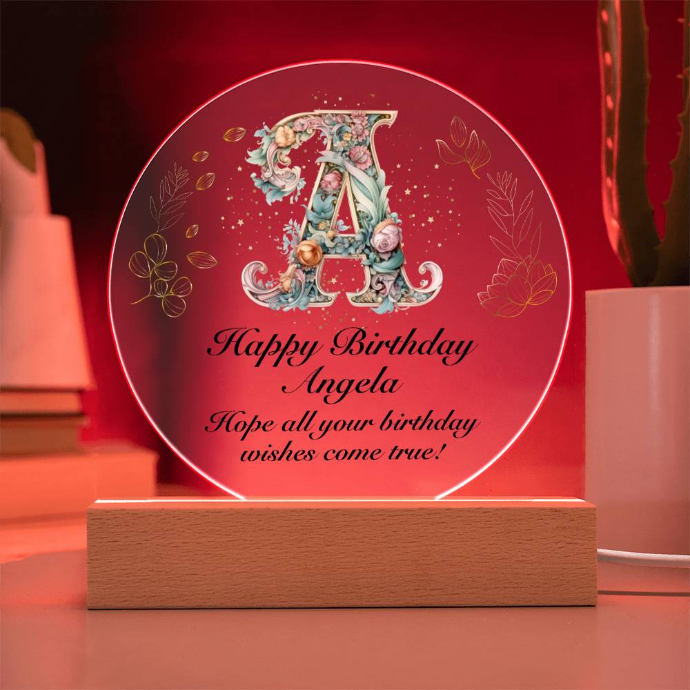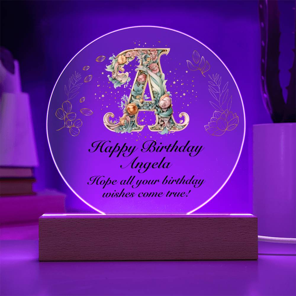 Happy Birthday Angela v01 - Circle Acrylic Plaque