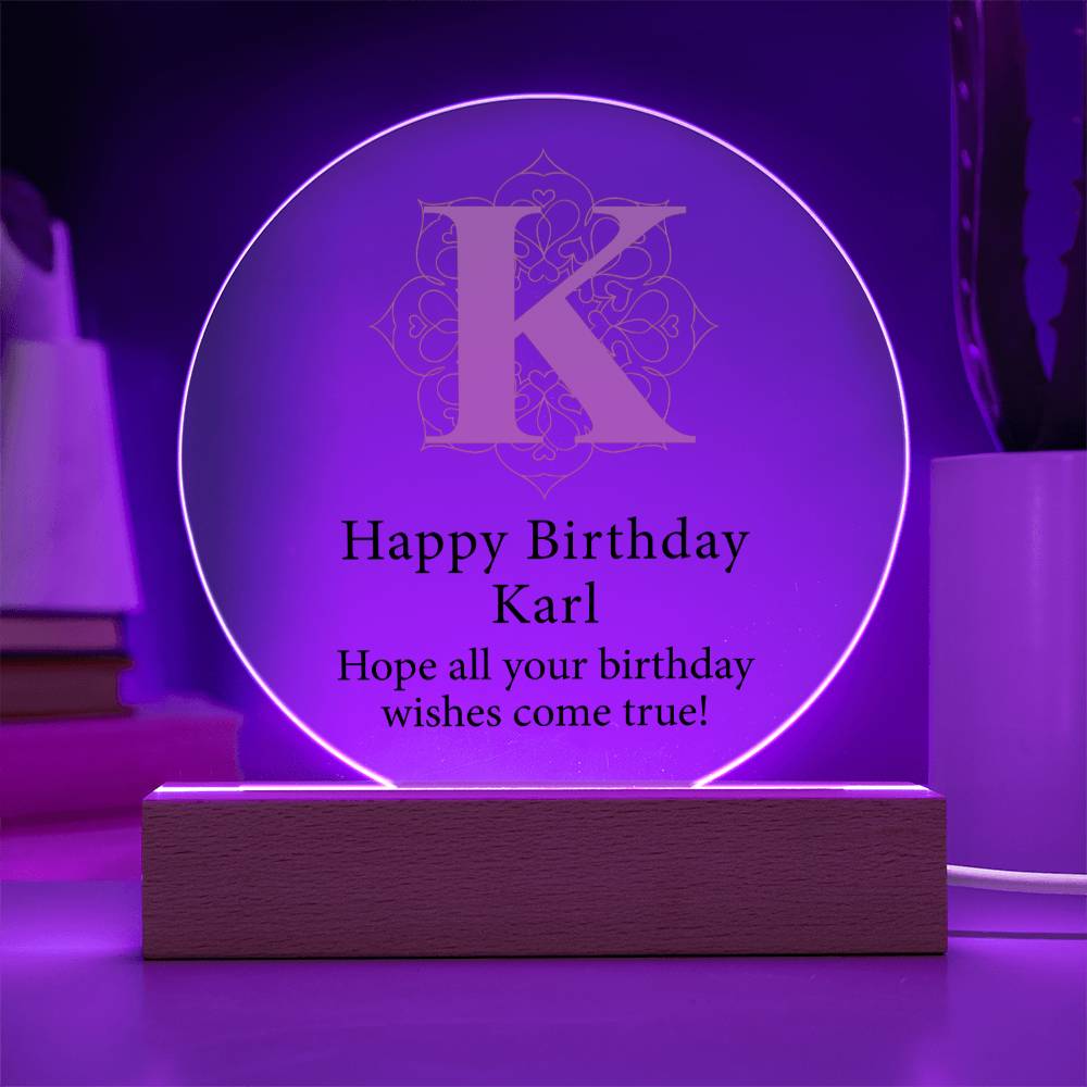 Happy Birthday Karl v01 - Circle Acrylic Plaque