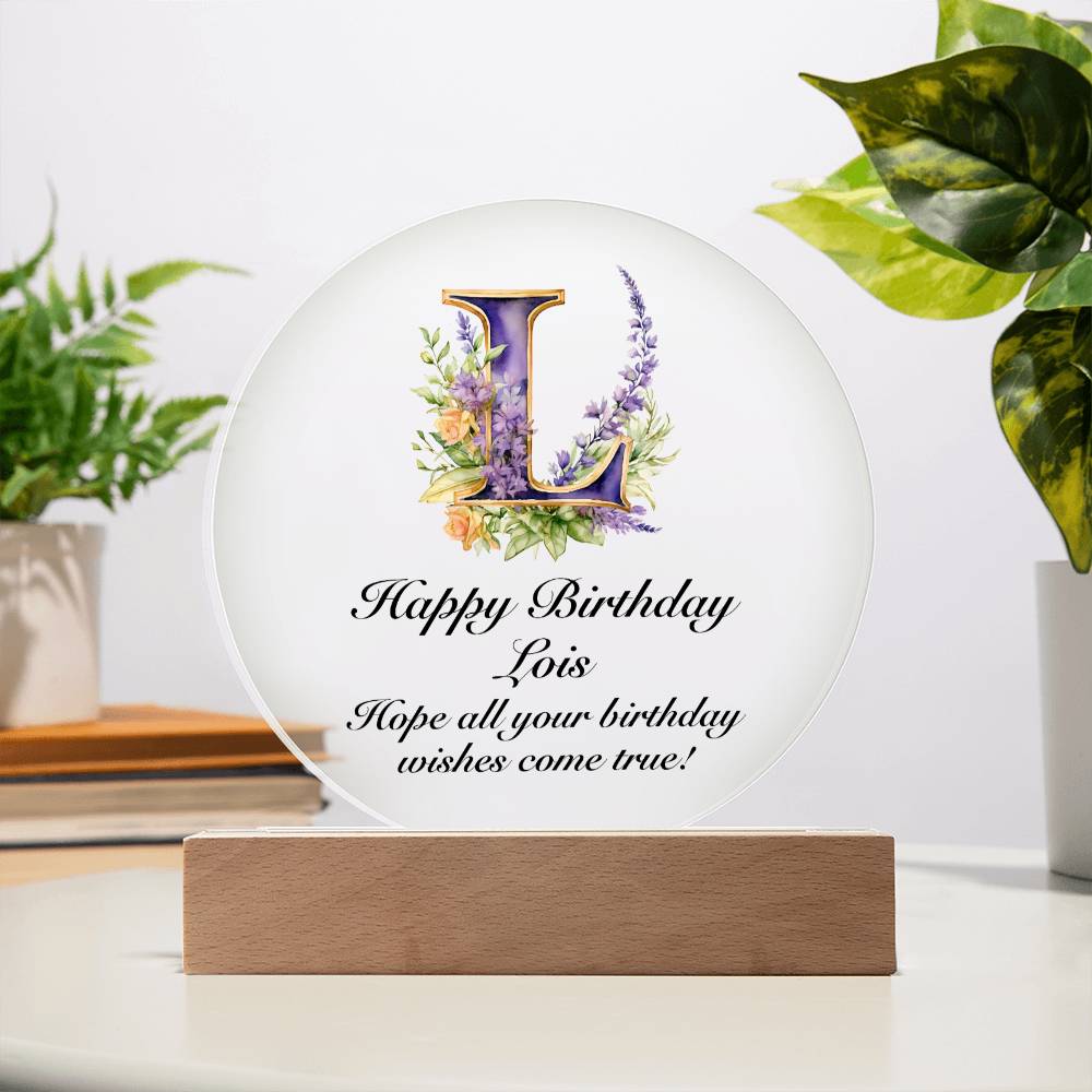 Happy Birthday Lois v02 - Circle Acrylic Plaque